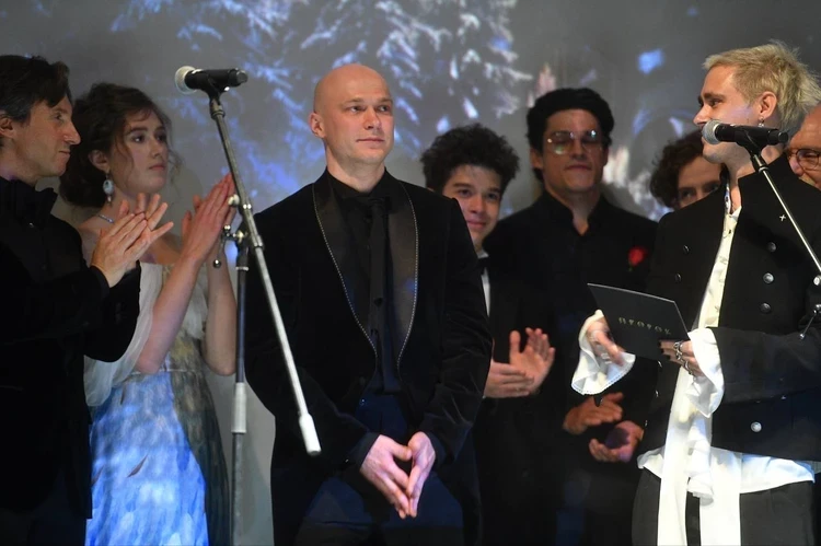 После этого режиссер представил съемочную группу, отдельно отметил исполнителя роли Дантеса Флориана Десбьендру (ранее засветился в сериале «Эмили в Париже) и Алену Долголенко, сыгравшей Наталью Гончарову. Последним, конечно, был Борисов, который не стал произносить долгих речей: