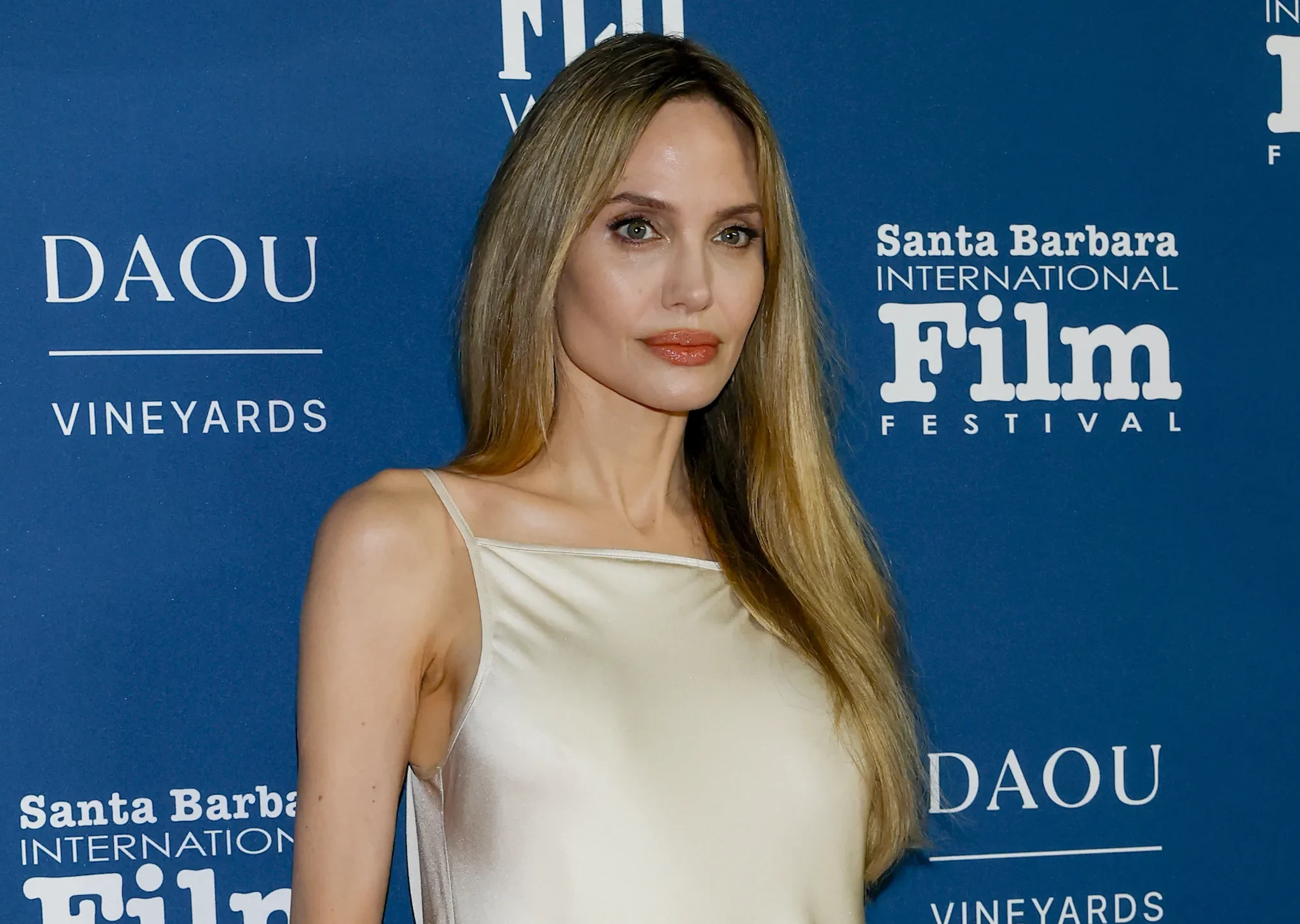 Анджелина Джоли в платье-комбинации посетила кинопремию в Калифорнии