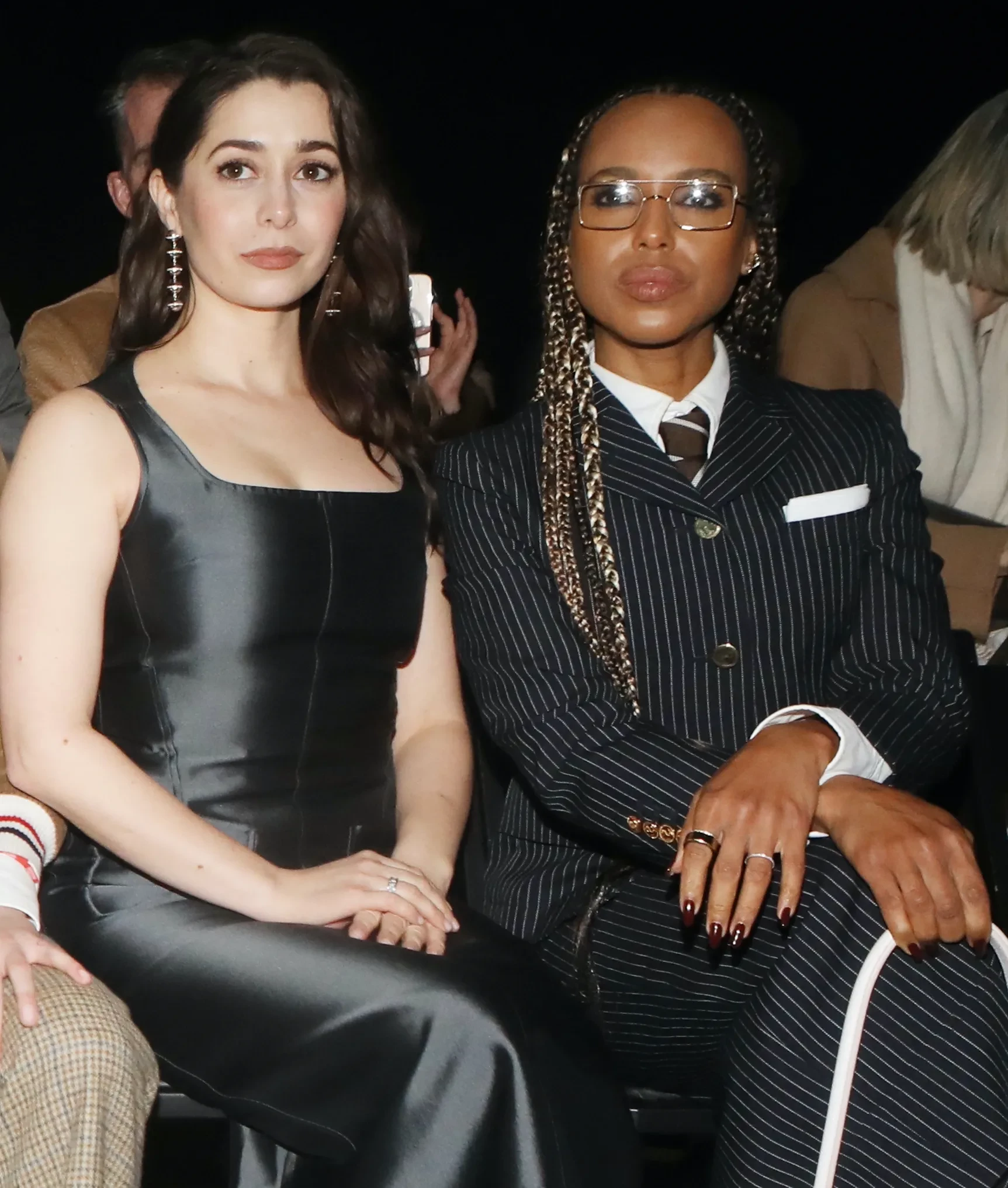 Кристин Милиоти и Керри Вашингтон/Фото: Udo Salters/Getty ImagesВ показе осеннего сезона Thom Browne приняли участие российские топ-модели нулевых: 34-летняя Дарья Строкоус и 38-летняя Анна Вьялицына. Дизайнер представил коллекцию, вдохновлённую птицами. Модели выходили на подиум в костюмах в фирменную клетку, плиссированных юбках с орнаментом, жакетах с вышивкой традиционного серого и ярких цветов. Образы дополняли яркие длинные ногти и накладные ресницы.