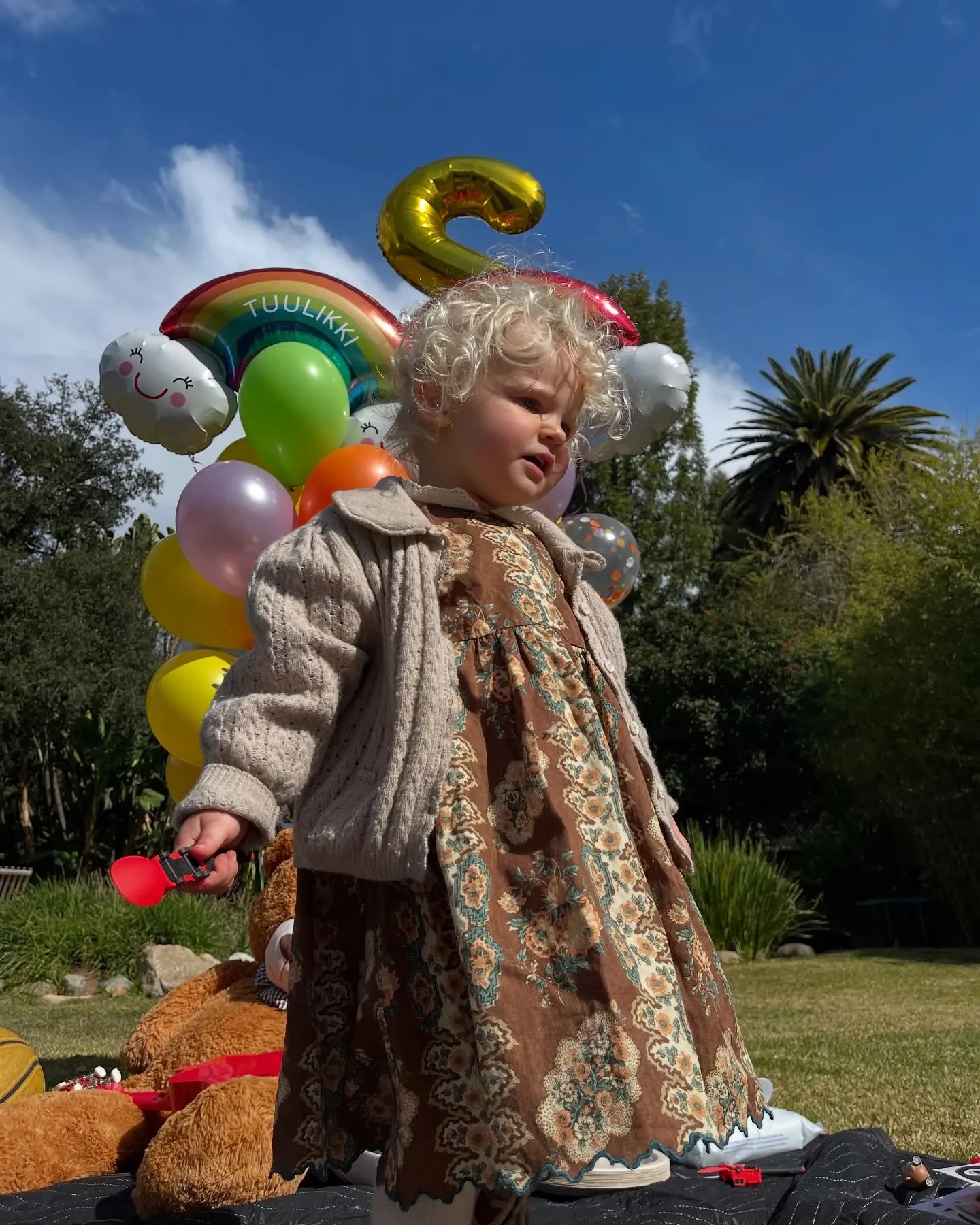 На снимках девочка празднует день рождения вместе с аниматором и семьёй. На одном из фото модель вместе с Тууликки прыгает на батуте. Также Эльза Хоск добавила несколько архивных кадров с прошлых дней рождения дочери.