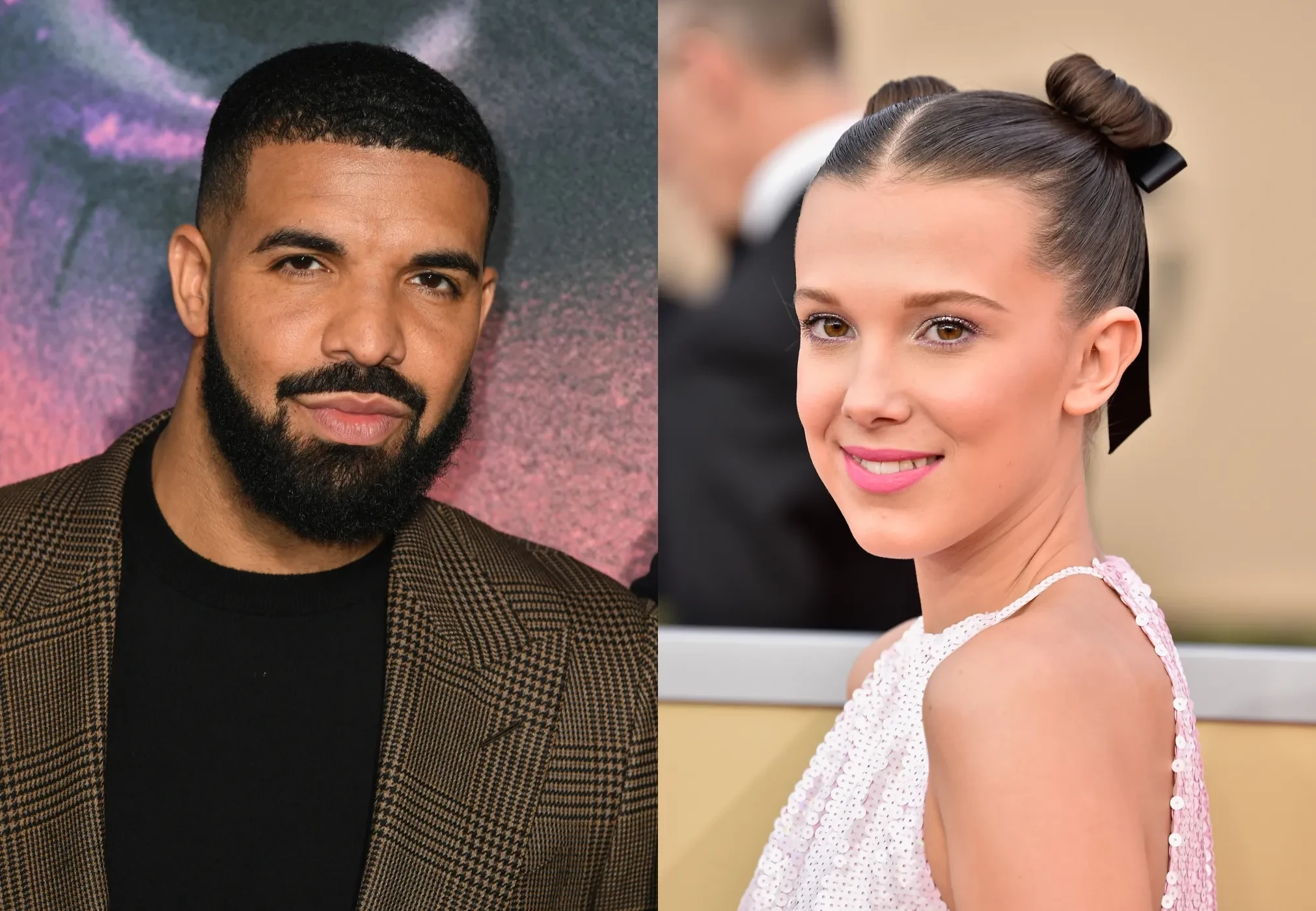 Дрейк/Фото: Kevin Winter/Getty Images/Милли Бобби Браун/Фото: Frazer Harrison/Getty Images/Коллаж/Spletnik