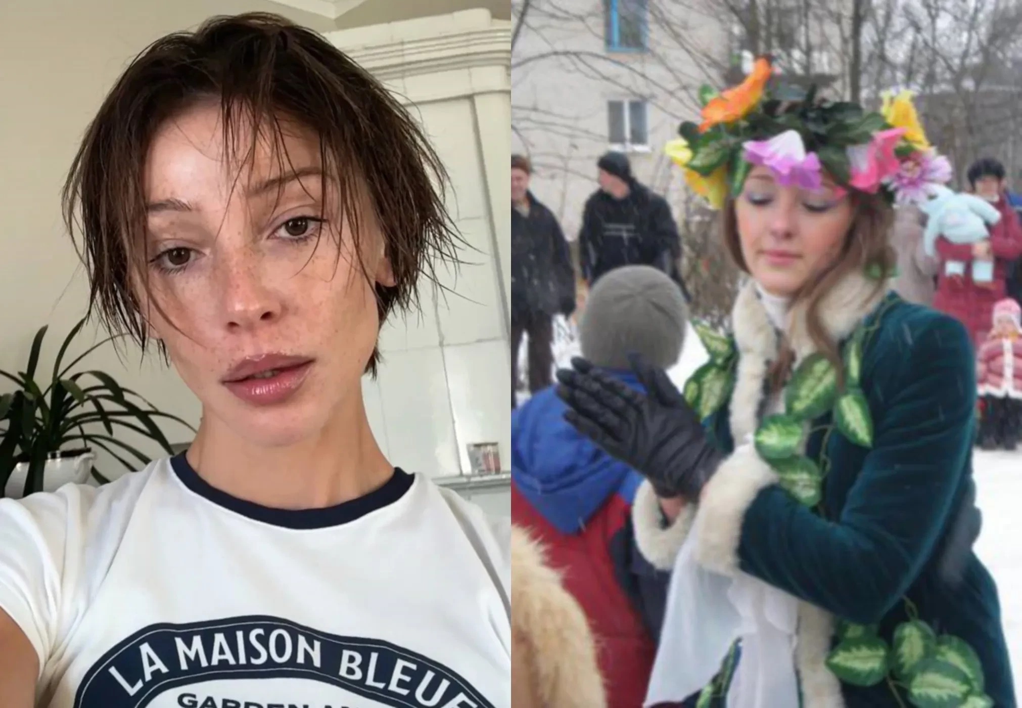 Так, на одном из снимков Настя позирует в цветочном венке и лиане на шее, которые символизируют начало весны, а на другом предстаёт в зимнем костюме с белоснежным головным убором, напоминающим Снежную королеву. Ивлеева также дополнила пост традиционной масленичной открыткой, на которой изображены блины.