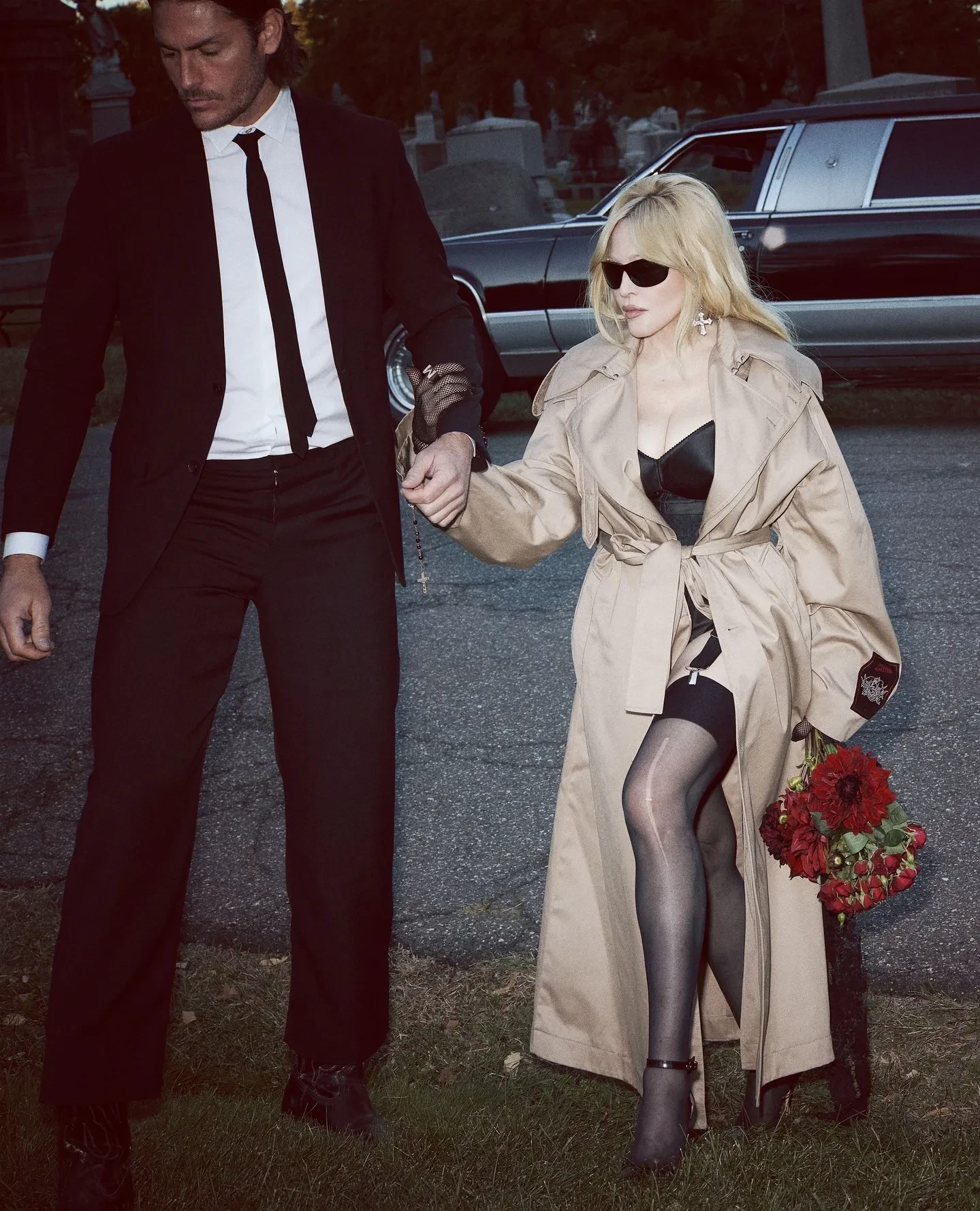 Мадонна для CR Fashion Book/Фото: Steven Klein/CR Fashion BookВыпуск, получивший название "Похоронные ритуалы" и стиль детективного нуара, был создан при участии культового фотографа Стивена Кляйна. Мадонна не только украсила обложку, но и приложила свою руку к созданию номера, написав сценарий, который стал основой для всей истории.