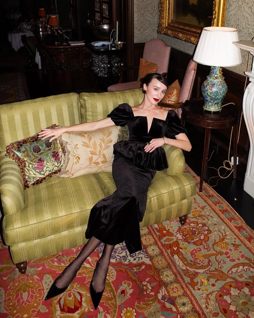 Мэри встречала гостей в нуарном образе: она надела бархатное платье self-portrait с баской, с лаковыми туфлями с острым мысом и коготками в тон, дополнив образ красной помадой. "Выходные в Лондоне в честь дня рождения. Двадцать с чем-то! Спасибо всем за тёплые пожелания", — подписала Мэри снимки, которые сделал её друг и фотограф Герман Ларкин.
