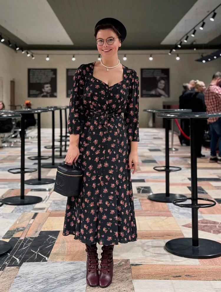 Наряды с цветочным принтом в идеале дополнять нейтральными неброскими аксессуарами, как это делает Татьяна. Темное платье с мелкими розочками молодая супруга Петросяна сочетала с бордовыми ботильонами и черной сумкой-косметической от Chanel. Плюс жемчужное ожерелье. И, конечно же, не обошлось без шляпки.
