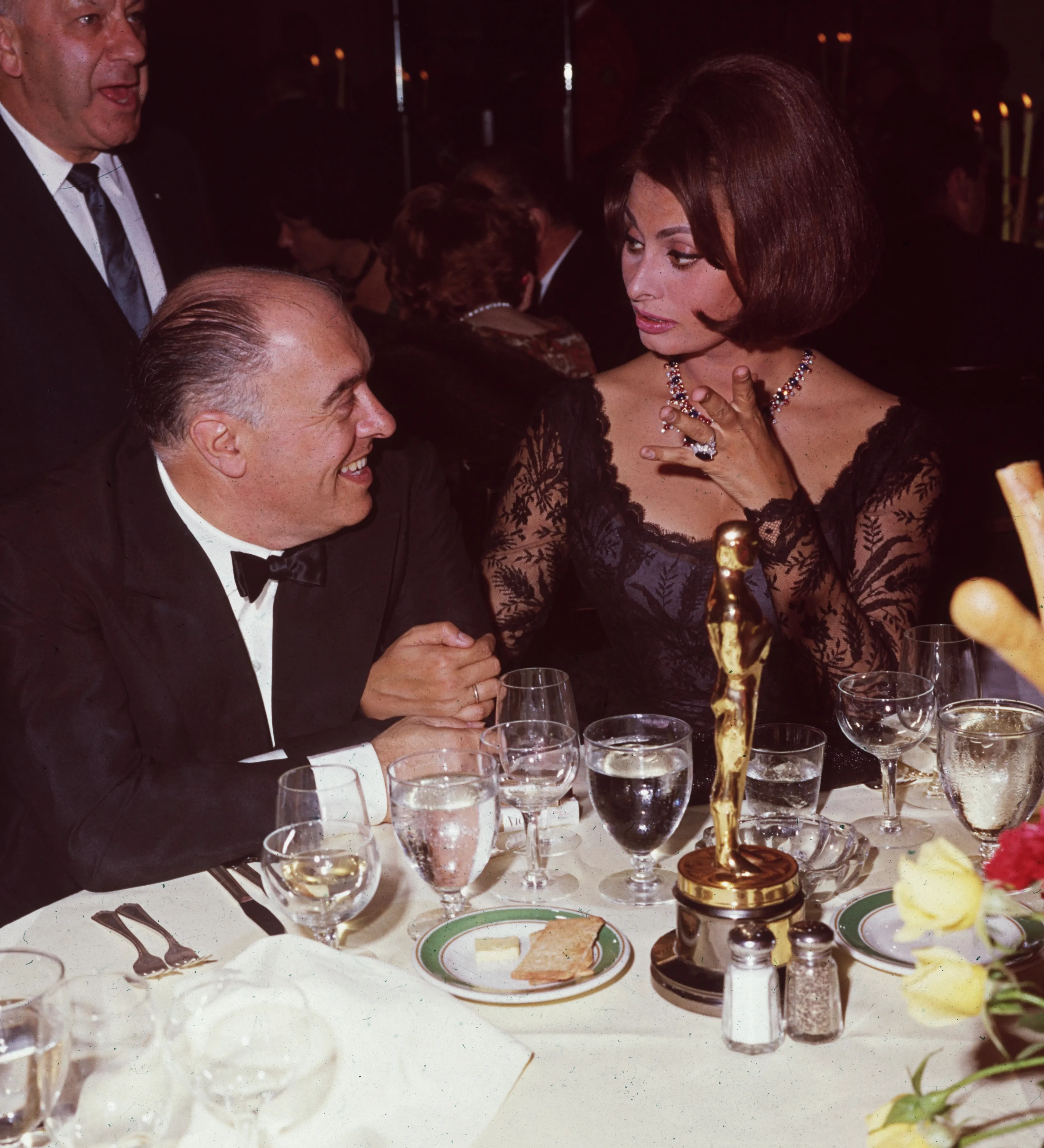 В 1962 году Софи Лорен получила "Оскар" за лучшую женскую роль в фильме "Чочара". О своей победе звезда узнала в шесть утра по телефону в своём доме в Италии, так как решила не ехать на церемонию в Лос-Анджелес. "Я не поехала тогда на "Оскар", потому что сказала себе: если я выиграю, то упаду в обморок, так что с тем же успехом я могу упасть в обморок дома", — объясняла она своё отсутствие.Спустя полгода академия устроила вечеринку в честь победы Софи, куда она пришла в кружевном чёрном платье и ожерелье с цветными драгоценными камнями огранки "кабошон" от Bulgari. Прошлогодний выход Кайли Дженнер в похожем платье на "Золотом глобусе", куда она пришла с Тимоти Шаламе, некоторые пользователи посчитали оммажем Софи. Для создания похожего нуарного образа понадобятся чёрное кружевное платье с длинным рукавом и объёмная укладка.