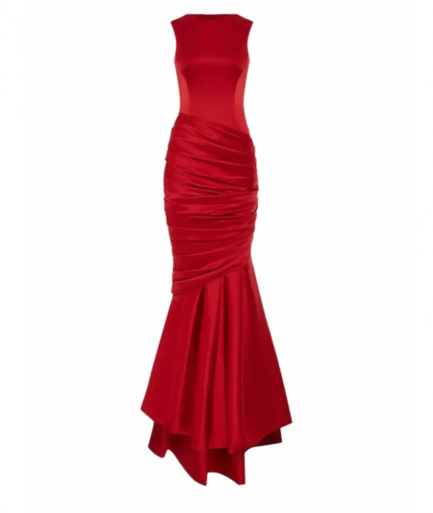 В 2007 году Николь Кидман пришла на премию в красном платье Balenciaga прямого силуэта авторства Николя Жескьера. Образ с бантом на шее и шлейфом, а также смелость актрисы в выборе цвета высоко оценили модные критики. Ведь звёзды крайне редко выбирают платья в цвет дорожки, опасаясь слиться с ней.Николь Кидман/Фото: Frazer Harrison/Getty ImagesRasario, 100 000 руб., Oskelly