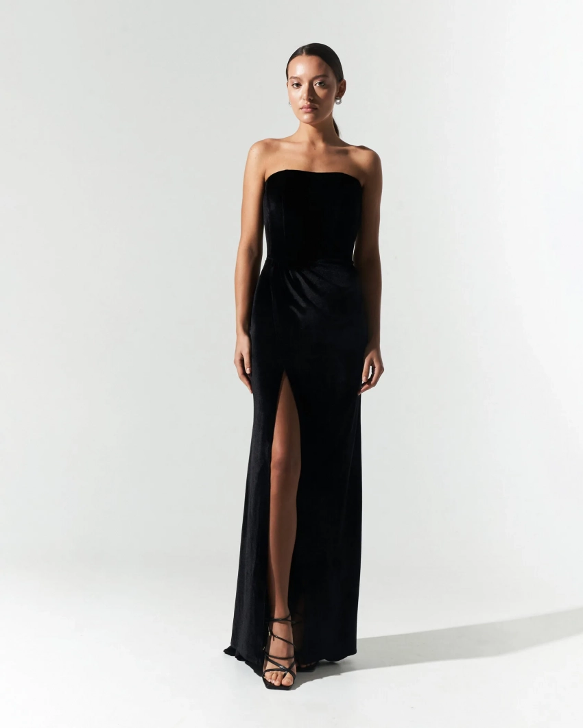 Образ Анджелины Джоли на "Оскаре" в 2012 году явно вошёл в историю — но многие всё ещё спорят: в историю культовых образов или мемов. Актриса позировала на дорожке в бархатном платье Versace с высоким разрезом. Многие потом цитировали её выход, а подобные платья раскупали как горячие пирожки. Сегодня найти похожее изделие можно даже у некоторых российских брендов.Анджелина Джоли/Фото: Ethan Miller/Getty ImagesMaria Faenn, 22 900 руб.
