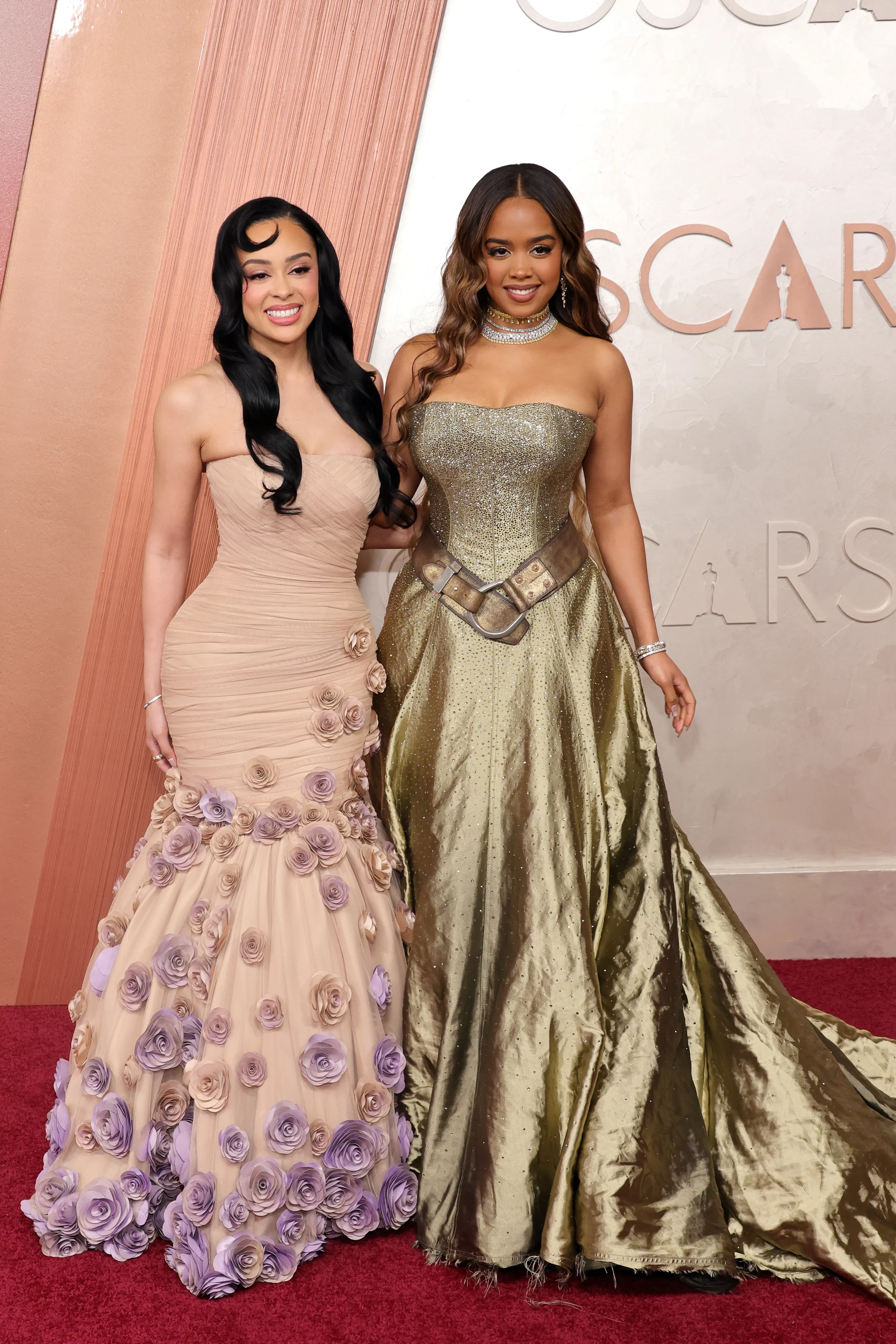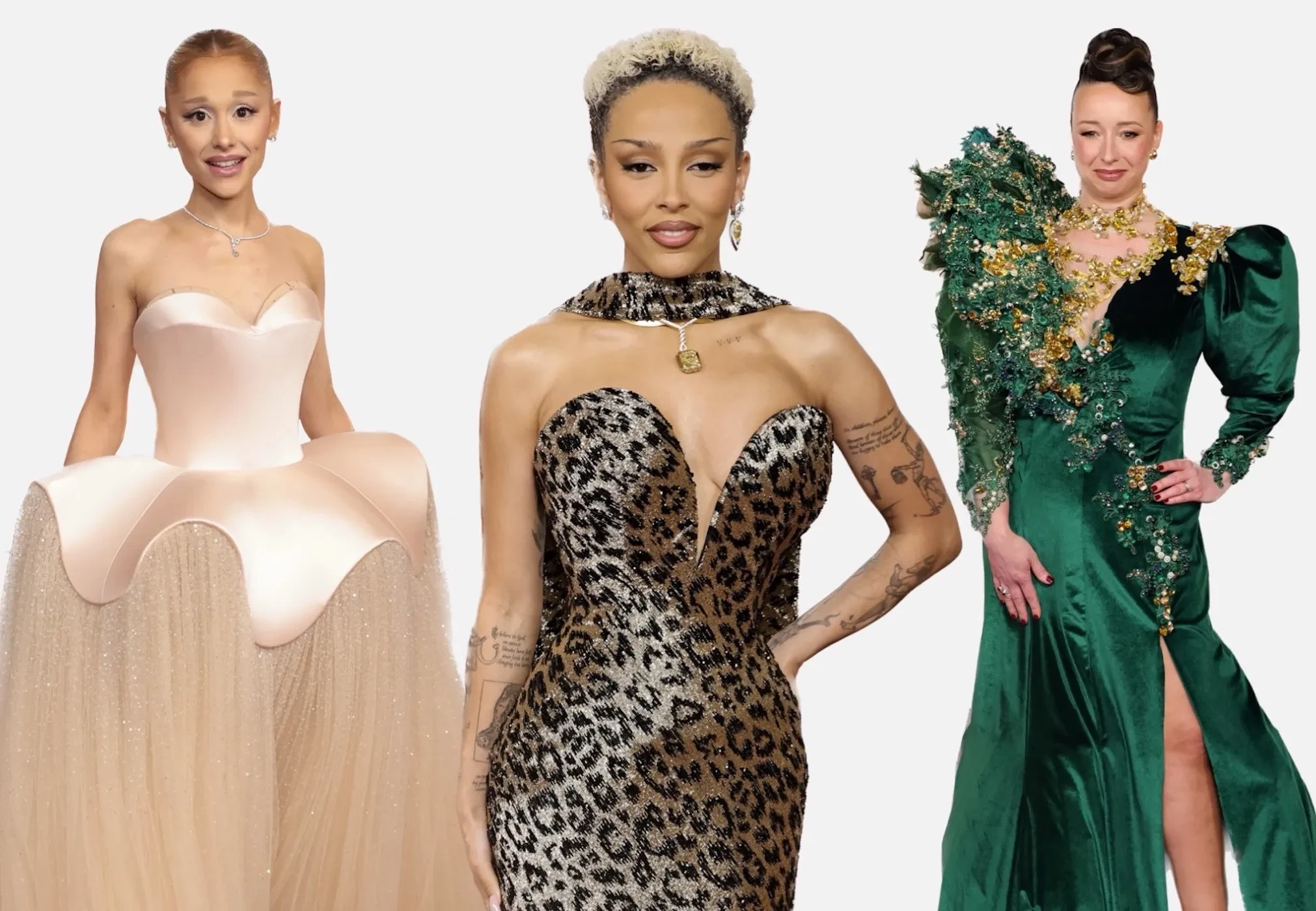 Вупи Голдберг примерила странное "голографическое" платье Cristian Siriano, а Зои Салдана, получившая статуэтку за лучшую женскую роль второго плана, надела платье Saint Lauren с воланами, которое портит неудачный верх из сетки. Ариана Гранде снова слилась с фоном в кутюрном платье Schiaparelli. Последнее время звезда выходит на дорожки в "бледных" образах, которые ей не идут. Хотя для выступления на сцене во время церемонии певица выбрала отличный вариант — красное пышное платье того же бренда.