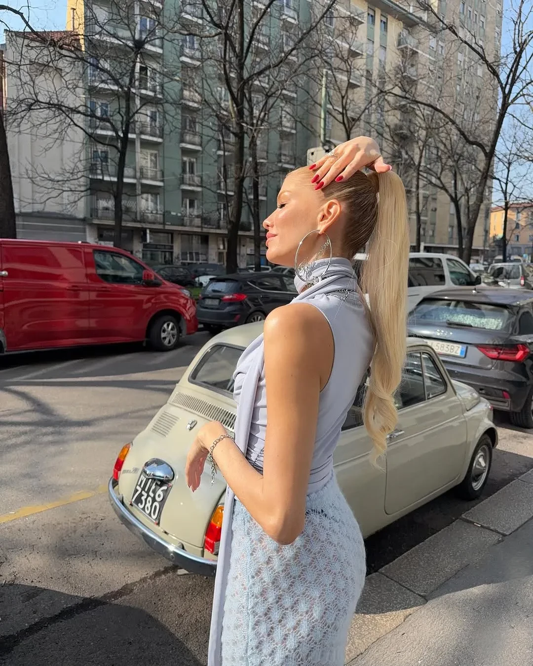 Девушка бизнесмена Владислава Доронина, 30-летняя Кристина Романова, выложила несколько фото своего образа, в котором она ходила на показ Prada, а также показала, как готовилась к шоу.