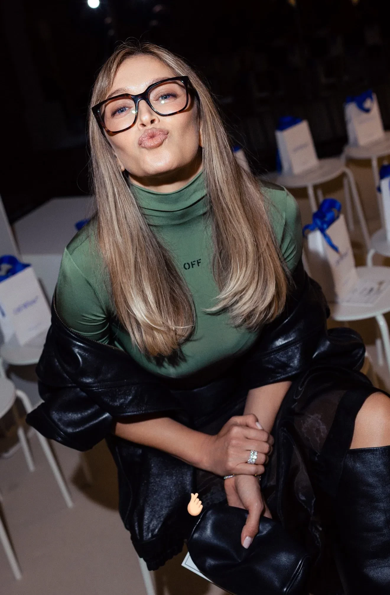 Вера Брежнева посетила показ новой коллекции бренда Off-White в рамках Недели моды в Париже. 42-летняя певица позировала перед шоу в прозрачной юбке, зелёной водолазке и сапогах на каблуках. Свой образ экс-супруга Константина Меладзе дополнила кожаной курткой и очками с прозрачными линзами.
