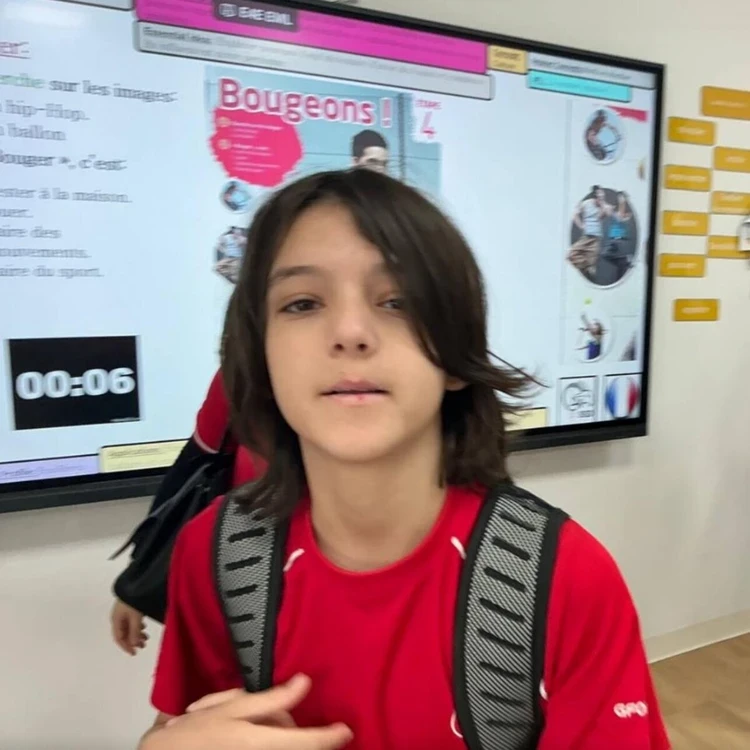 На одном из снимков девочка запечатлела сидящего за партой младшего брата Мартина. На другом фото Мартин стоит возле интерактивной доски.