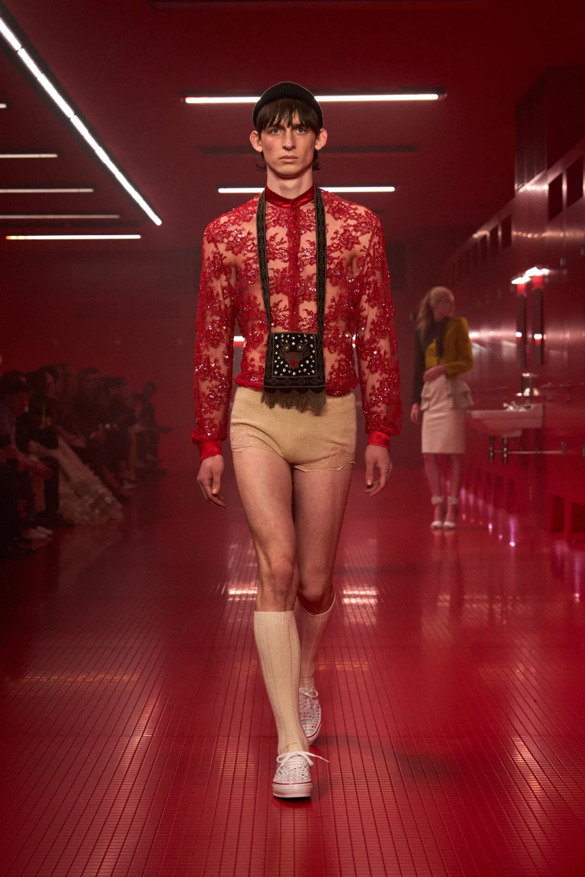 На подиуме также дебютировал 16-летний Самюэль Кай, сын Наоми Уоттс от бывшего возлюбленного Лива Шрайбера.