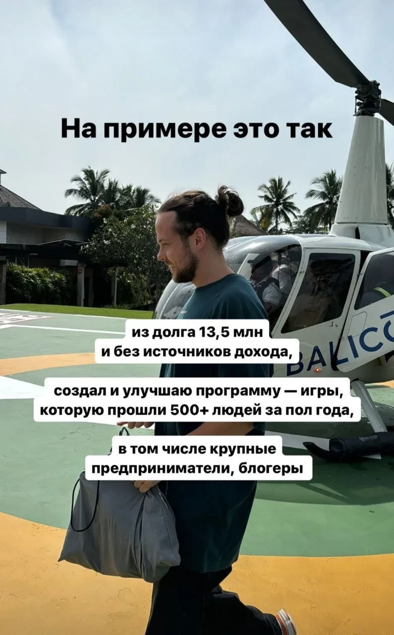 "Вышел из зависимостей, восстановился от анорексии, вышел из миллионного долга и научился соединять духовное и материальное в деятельности. 12 лет погружён в йогические и медитативные ежедневные практики", — писал Кошкаров.