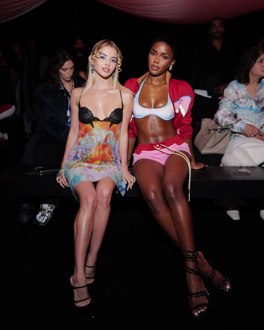 Рената Литвинова, которая накануне дала интервью португальскому Vogue, в этом сезоне сходила только поддержать своего друга Демну Гвасалию на показ Balenciaga. Марк Эйдельштейн тоже сидел по соседству в компании своего брата и Виттории Черетти. Также 23-летняя звезда "Аноры" посетил презентацию бренда Loewe и подружился с A$AP Rocky на шоу Miu Miu.
