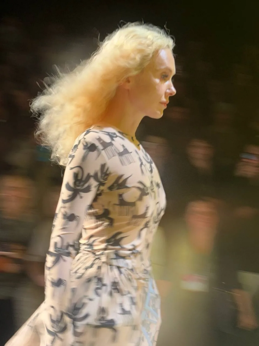Ольга Карпуть открывала показ бренда, который основал стилист Игорь Андреев. Ксения Собчак вышла на подиум в объёмном зелёном платье, а Мария Миногарова дефилировала в платье "из ниток". В зале модель поддерживал её предполагаемый бойфренд, актёр Александр Горчилин. Когда Мария проходила мимо, он воскликнул: "Красотулечка!".