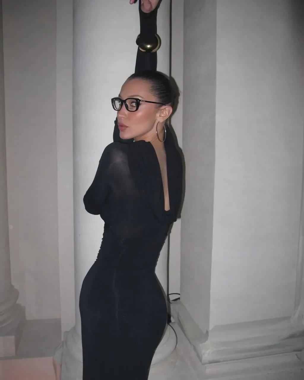 Белла Хадид, которая недавно снова вышла на подиум после перерыва, появилась на афтепати показа Saint Laurent на Неделе моды в Париже. Для выхода в свет 28-летняя супермодель и амбассадор модного дома выбрала полупрозрачное платье, дополнив образ массивными браслетами.