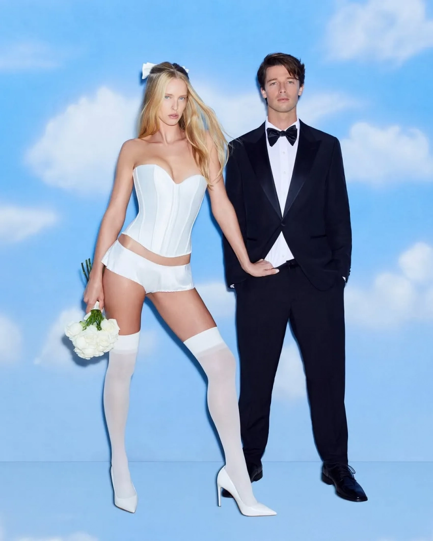 "Самая горячая пара сезона", как её представили в рекламе, предстала в кадре в роли жениха и невесты, продемонстрировав "свадебную коллекцию" с комплектами нижнего белья. В линейку также вошли корсеты, высокие чулки, прозрачное платье.
