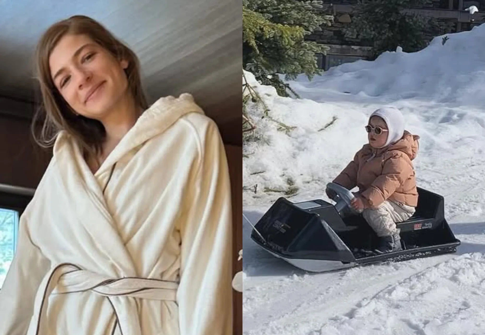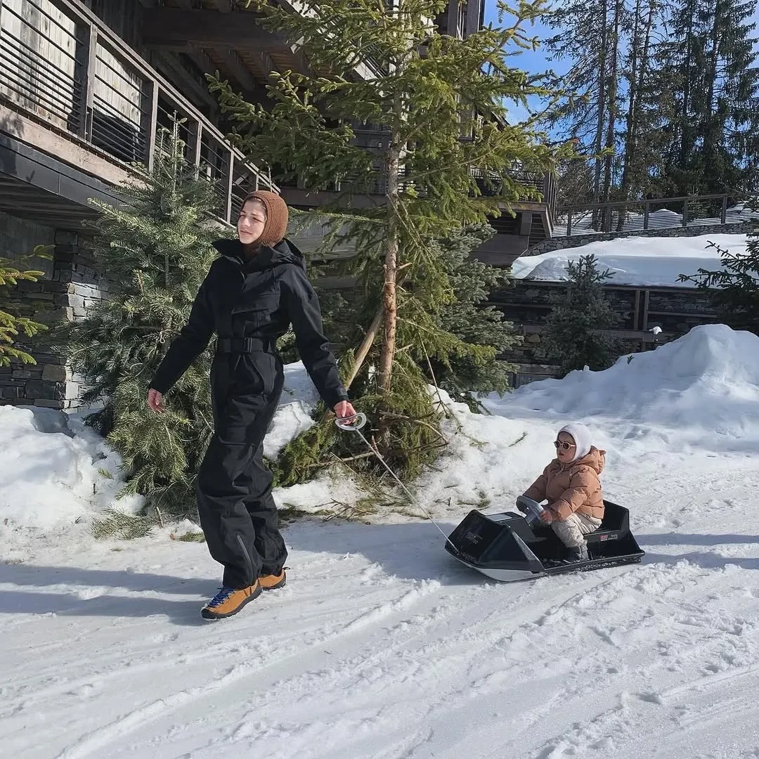 На снимках блогерша возит дочь на санках, отдыхает в отеле, катается на лыжах и пробует еду в местных ресторанах. 30-летняя Саша не уточнила, куда именно отправилась в отпуск и составил ли семье компанию её 33-летний супруг, которого нет на фото.