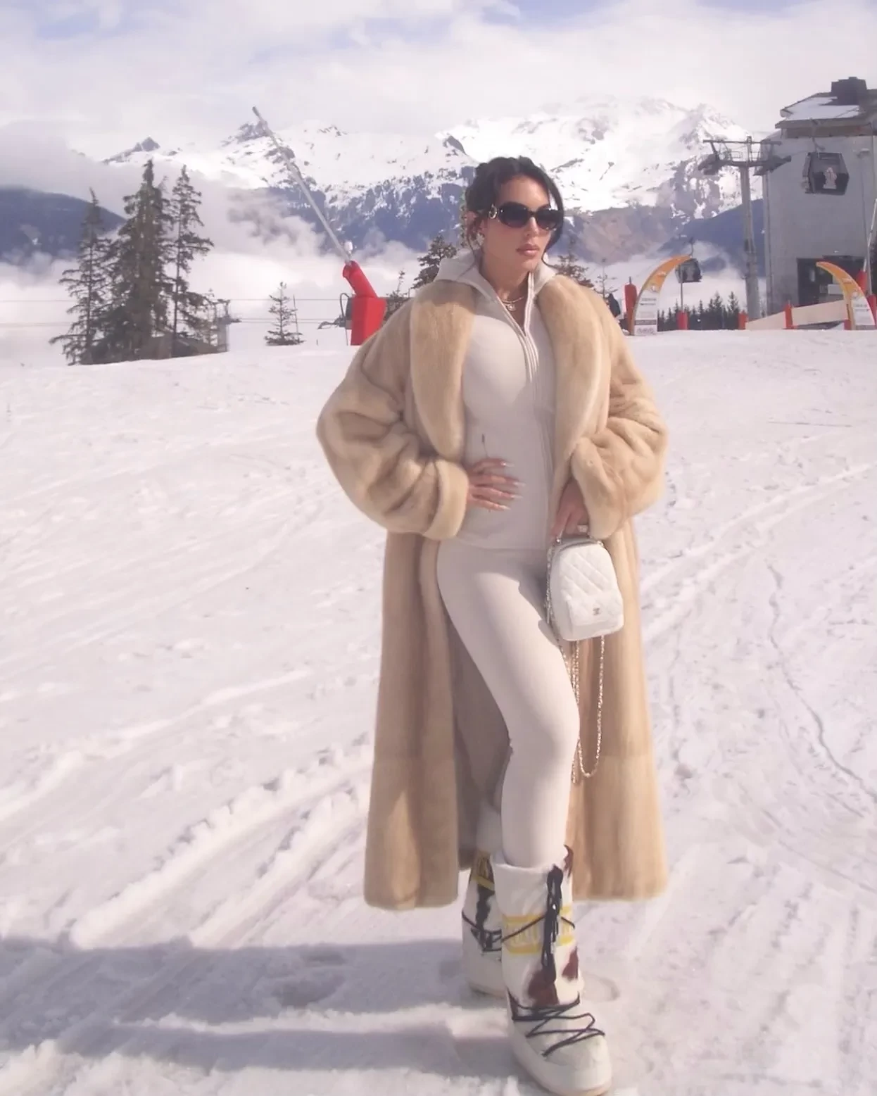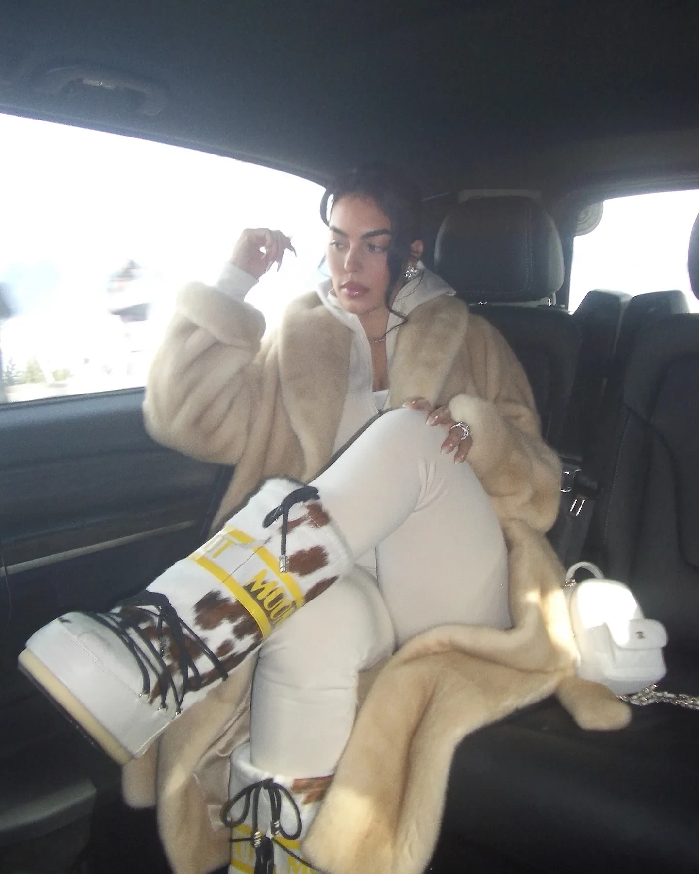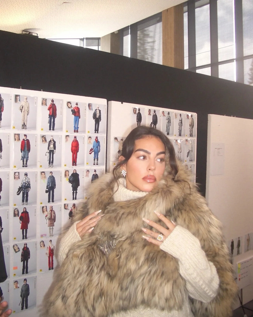 Фото Джорджины РодригесПеред поездкой в Куршевель Джорджина присутствовала на Неделе моды в Париже, где посетила показы нескольких модных домов. На горнолыжный курорт она отправилась для для того, чтобы самой пройтись по подиуму на недавнем показе Moncler.