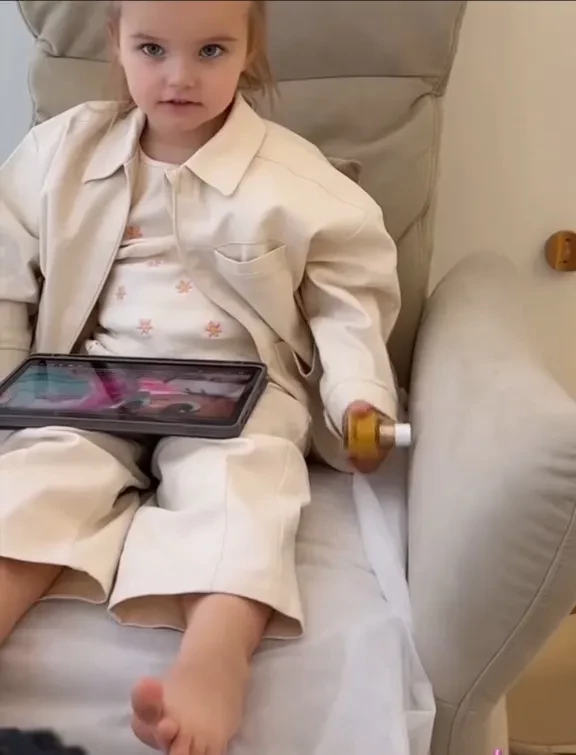 В видео Киара сидит в маникюрном кресле с лаком Hermes в руках. Судя по кадрам, дочери Кафельниковой тоже нанесли покрытие, однако ей, в отличие от мамы, которая ограничилась чистым цветом, добавили глиттер.