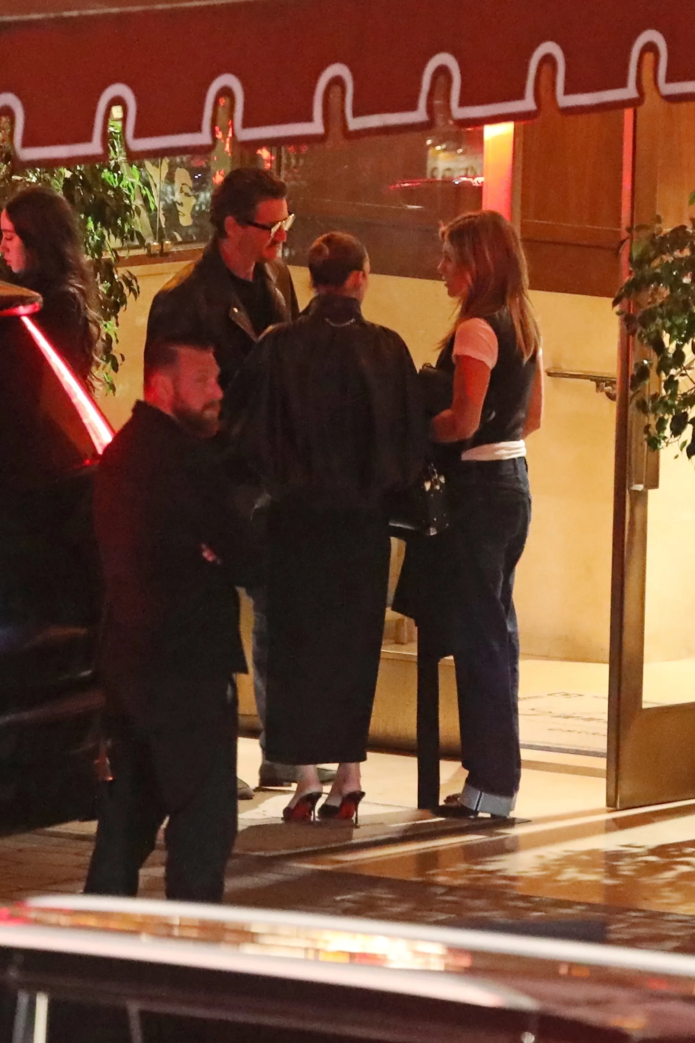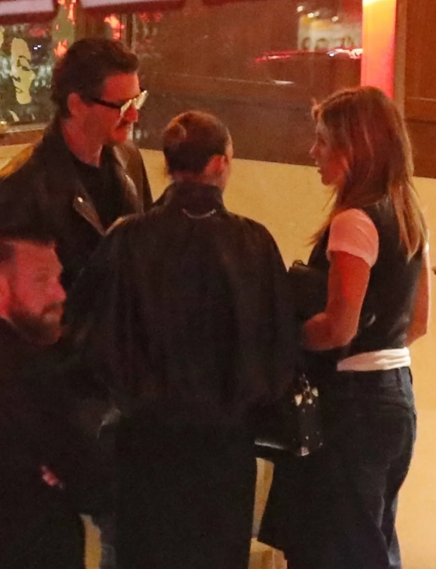Папарацци засняли Энистон и 49-летнего Паскаля беседующими на парковке возле отеля Sunset Tower после трёхчасового ужина в местном ресторане. На встрече Дженнифер была одета в тёмно-синие джинсы, чёрный жилет и белую футболку. На Педро были синие джинсы, чёрная рубашка и коричневая кожаная куртка.