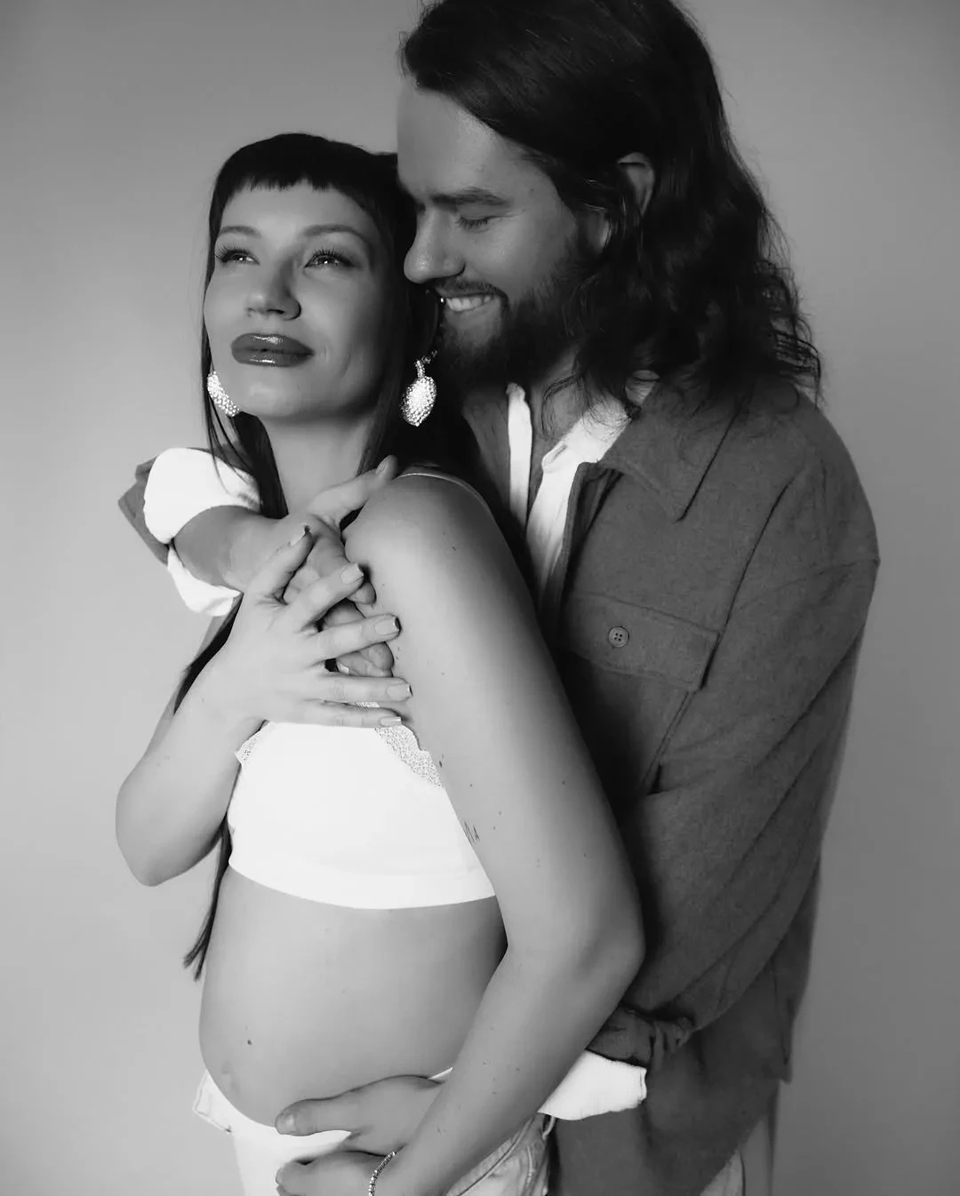 "Прекрасное время. Почти шесть месяцев у меня под сердцем маленький человек. Невероятно", — подписала Ида кадры, на которых она в белом белье и джинсах демонстрирует округлившийся живот и обнимает возлюбленного. Олег для семейной фотосессии нарядился в белую и коричневую рубашки.