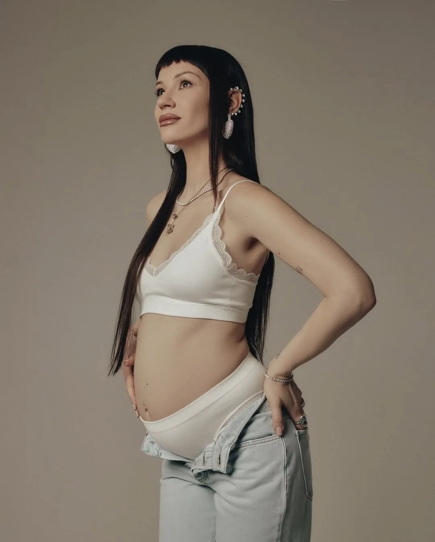 Ида Галич снялась в новой фотосессии в преддверии рождения второго ребёнка. На снимках 34-летняя блогерша позирует в кадре вместе с женихом Олегом Ледвичем.