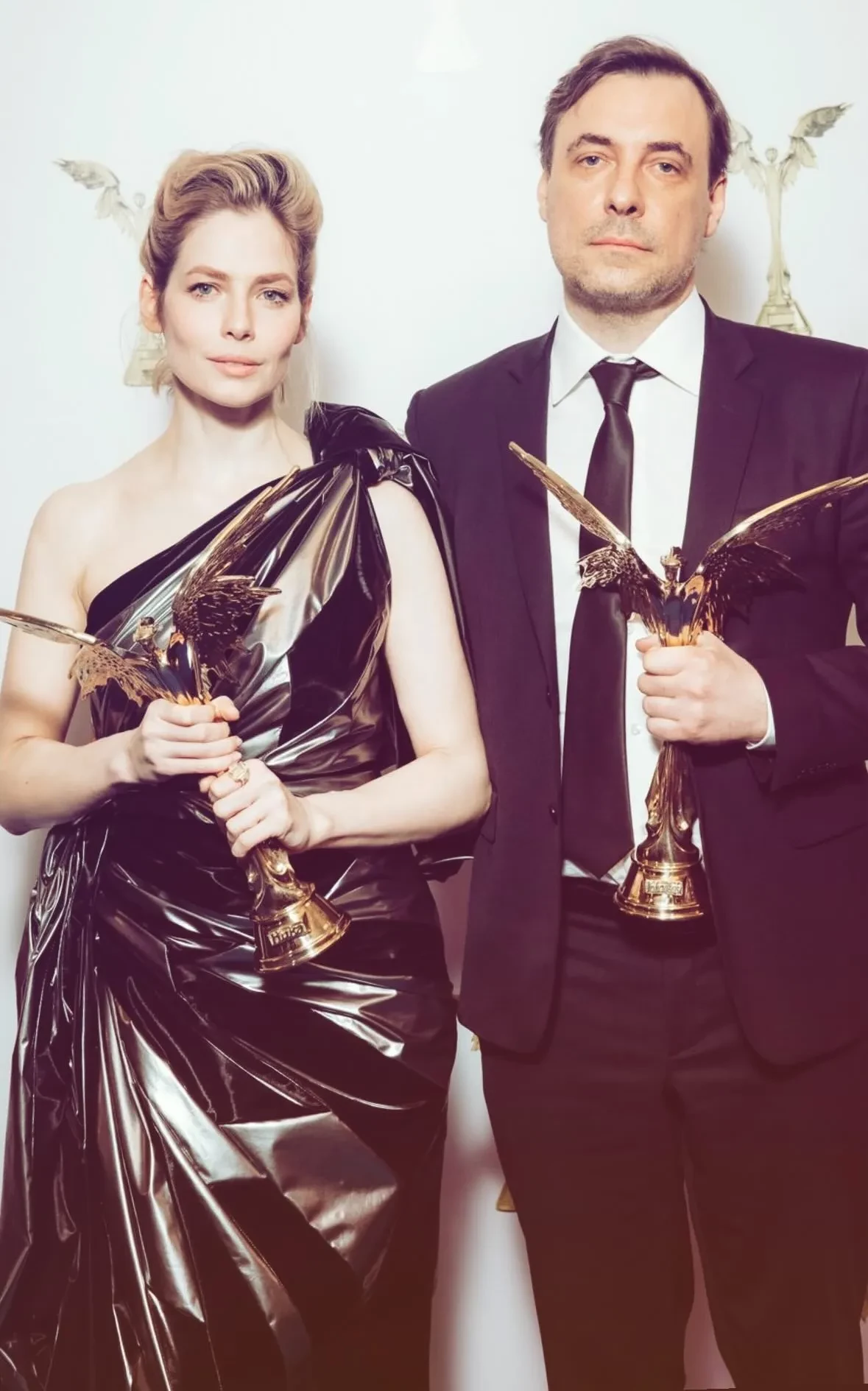 46-летний Цыганов разделил победу в номинации "Лучшая мужская роль" с Юрой Борисовым и, как и звезда "Аноры", посвятил награду супруге. Юлия, которая позировала на дорожке в чёрно-серебристом платье Viva Vox и туфлях Balenciaga, второй год подряд победила в номинации "Лучшая актриса" и передала свою статуэтку Марианне Шульц, отметив её игру в фильме "Эра". Всего фильм "Мастер и Маргарита" получил пять наград.