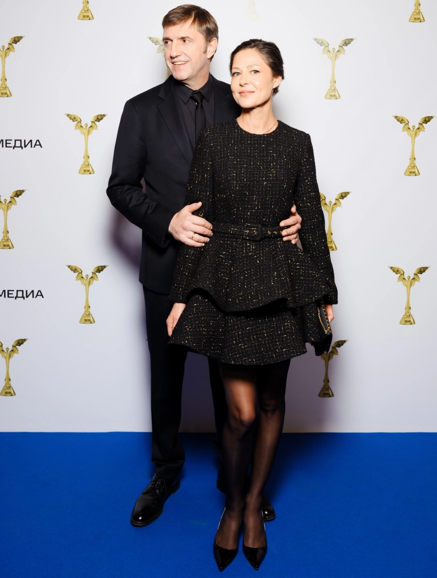 53-летний Владимир Вдовиченков вышел в свет с 44-летней супругой Еленой Лядовой. Актёры, как и многие другие звёзды, посетили кинопремию "Ника".