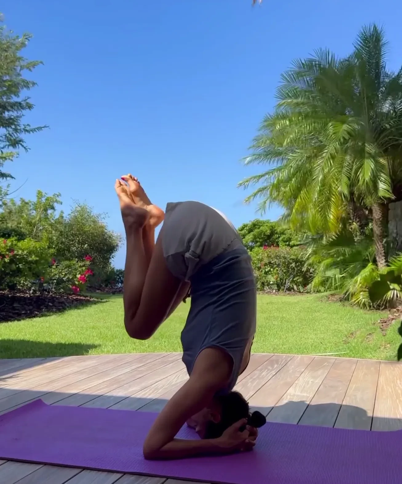 На фото Надежда позирует на пляже в купальнике с фламинго, занимается йогой, отдыхает в местных ресторанах, выгуливает модные образы с сумкой Hermes и ювелирными украшениями, водит машину и наслаждается местными пейзажами и закатами.