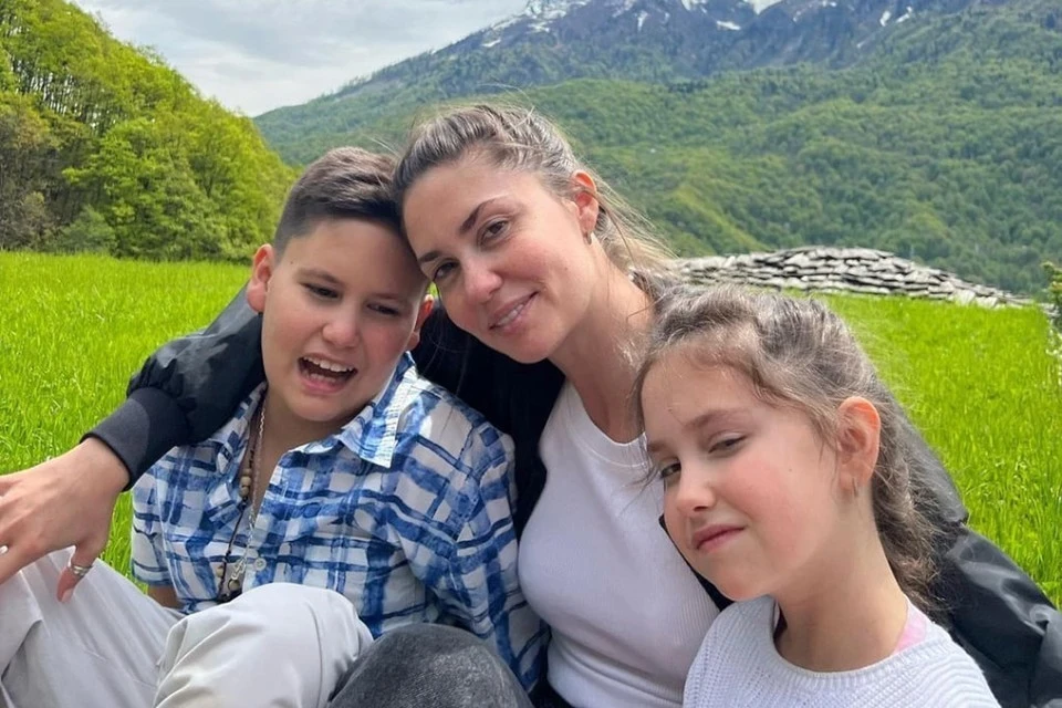 Агата Муцениеце с сыном Тимофеем и дочкой Мией. Фото: соцсети.
