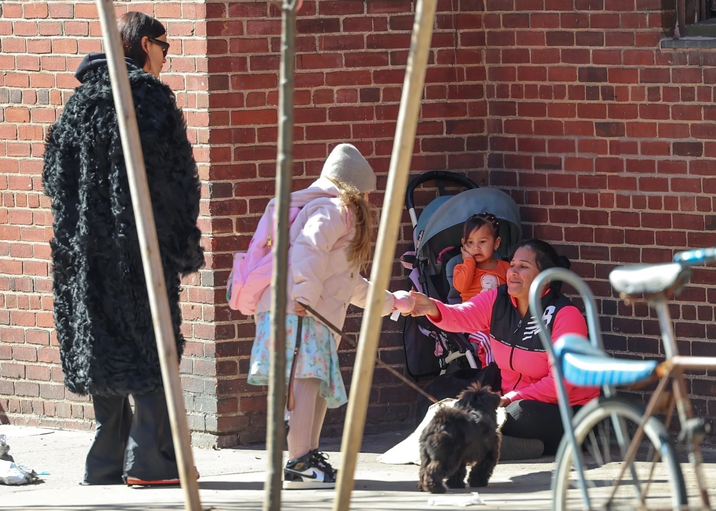 Ирина Шейк с дочерью Леей прогулялись по Нью-Йорку и подали милостыню бездомной