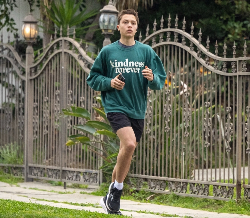 Фотографы застали единственного биологического сына пары, которая со скандалом разводилась в течение восьми лет, на пробежке в Лос-Анджелесе. Нокс был одет в короткие шорты и свитшот с надписью Kindness Forever (англ. "Доброта навсегда"), в руке он сжимал телефон. Судя по всему, спорт — серьёзное увлечение сына Джоли: за последнее время его уже не в первый раз застают на пробежке.