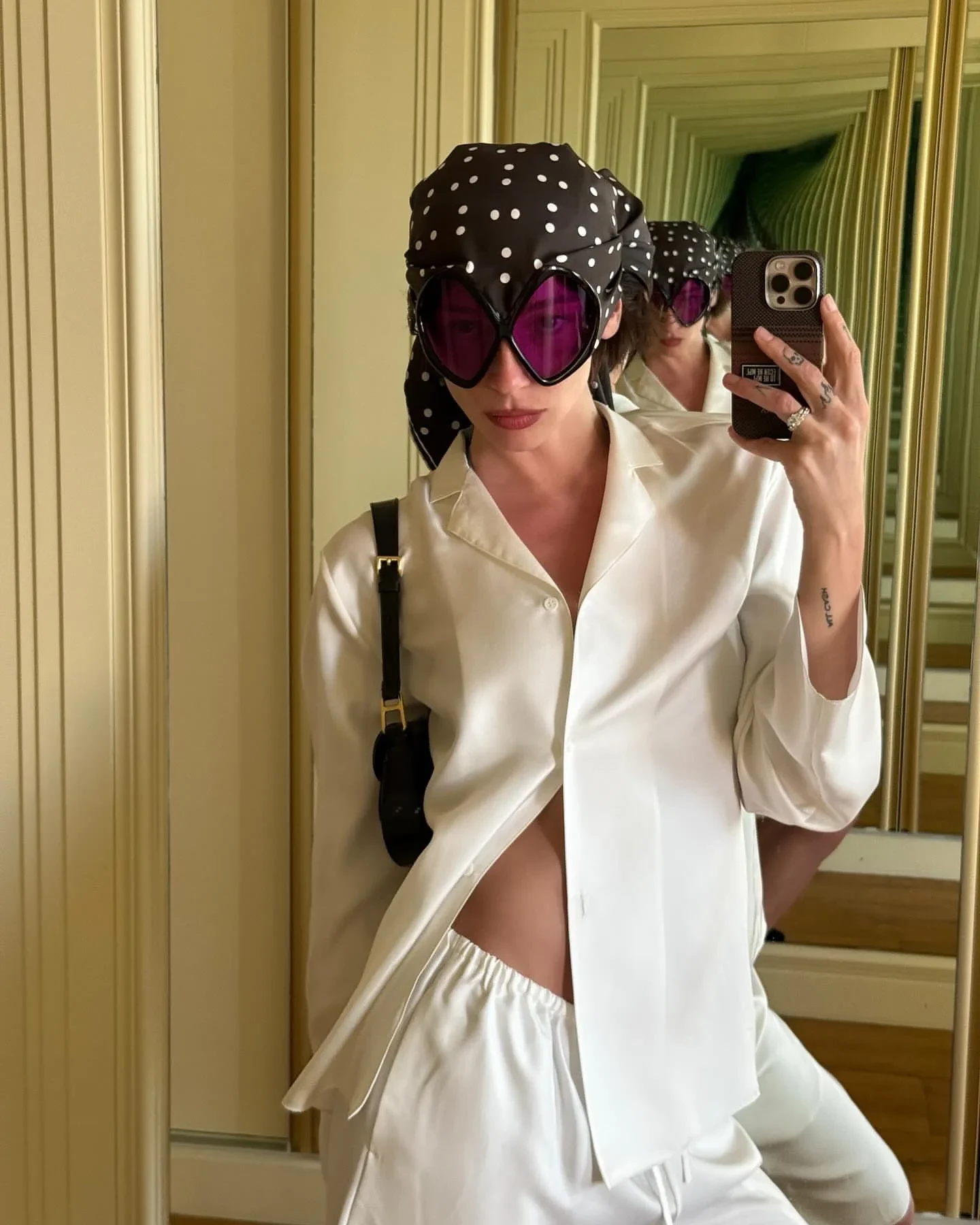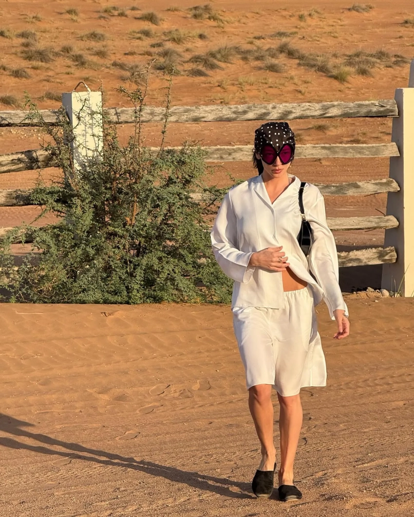 На новых видео Ивлеева проводит время на пляже: купается в Индийском океане и загорает. Также блогерша добавила несколько своих фотографий: на одной она позирует на фоне гор, а на другой — напротив зеркала в белой рубашке, шортах и бандане. Образ она дополнила популярными очками с фиолетовыми линзами.