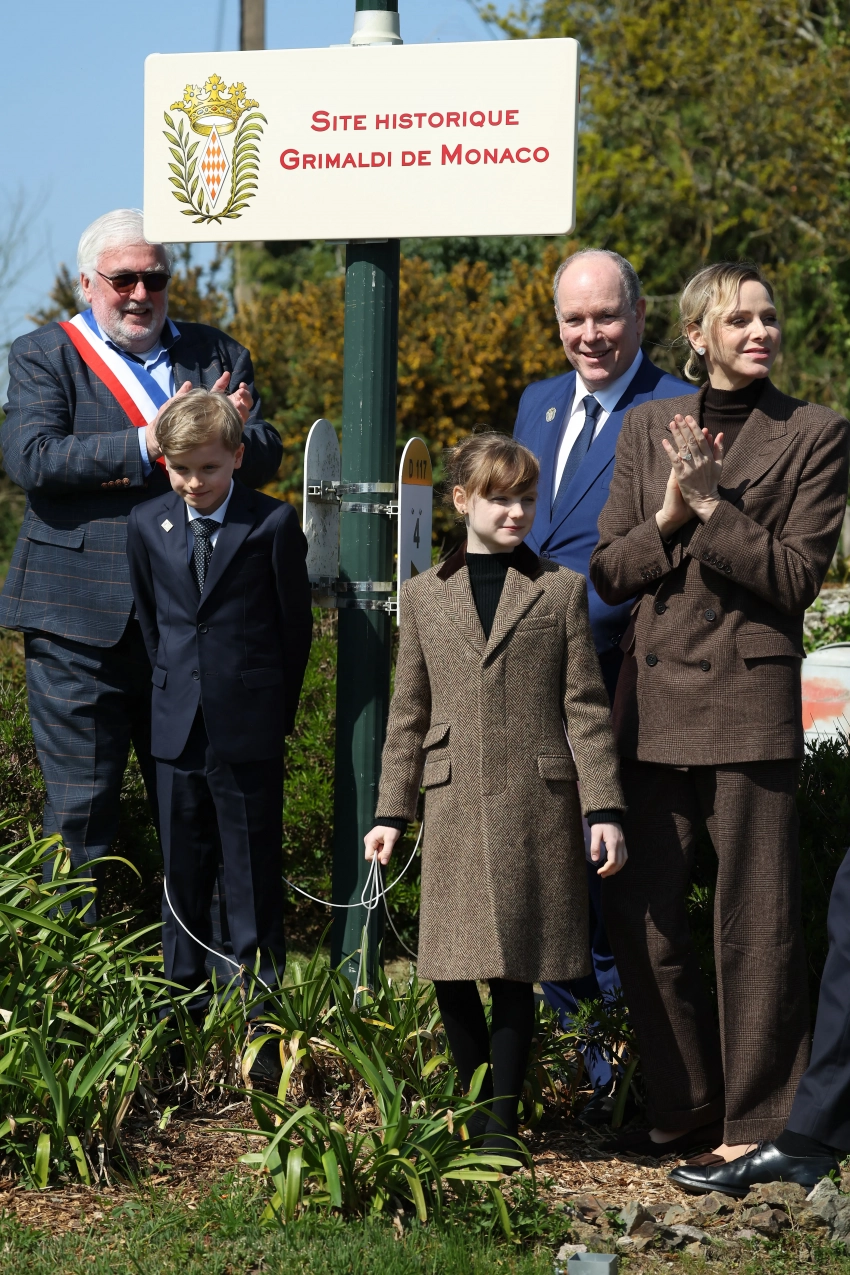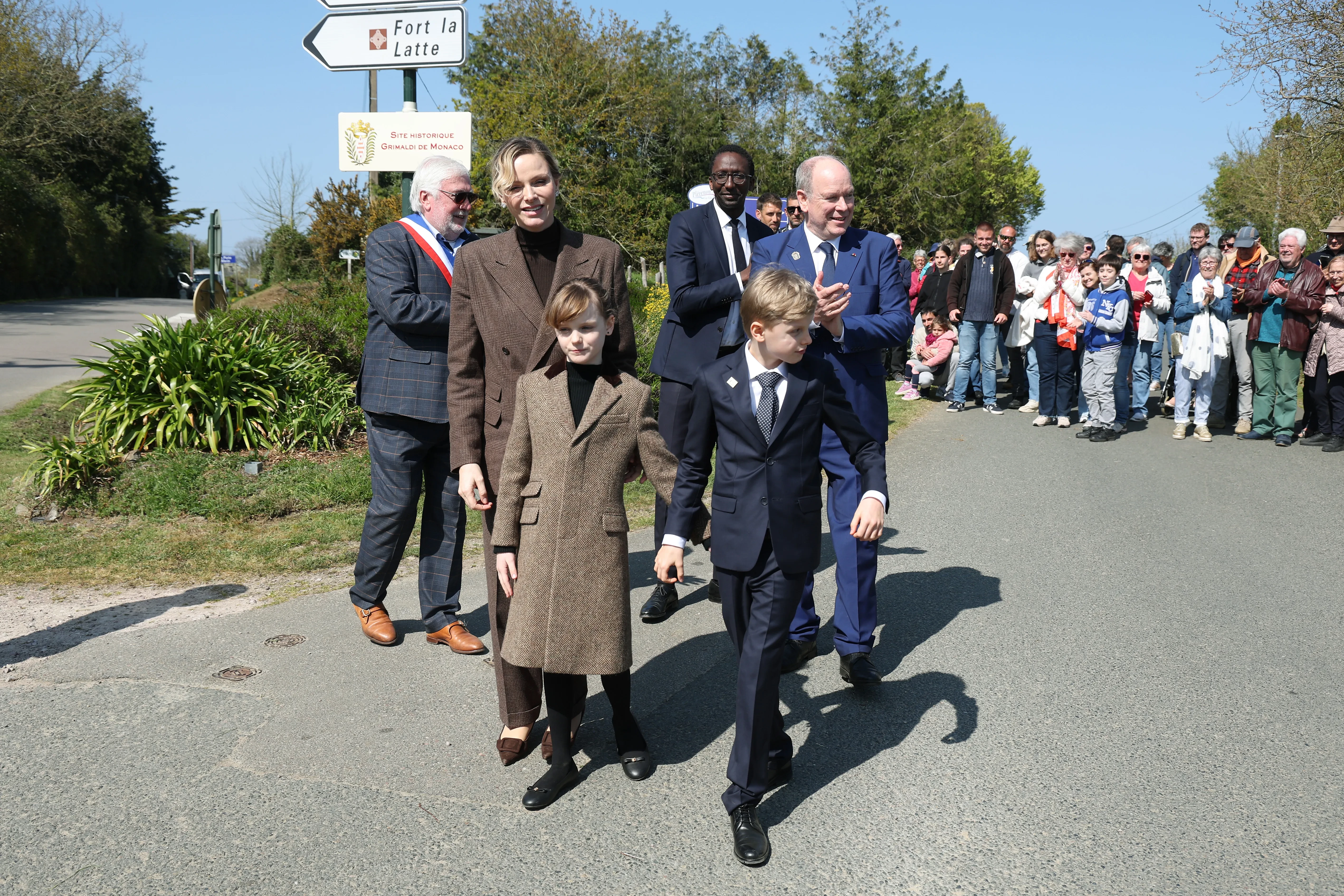 Альбер II и княгиня Шарлен с детьмиСемья приняла участие в открытии мемориальной доски в честь их визита в Матиньон. Напомним, принц Альбер принадлежит к династии Гримальди, которая имеет исторические связи с Бретанью, так как его предки сохранили титулы, связанные с этим регионом.