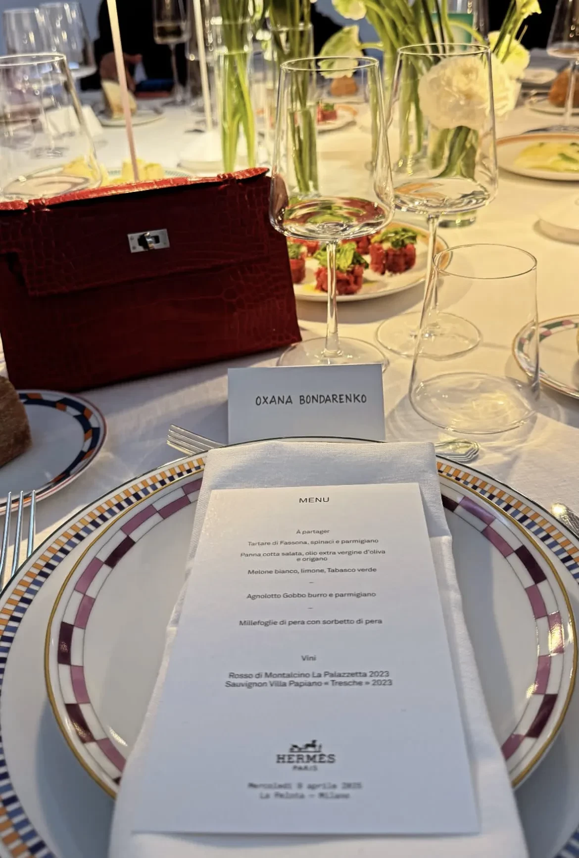 Бондаренко с дочерьми посетили литературный клуб в поп-ап-библиотеке бренда Miu Miu и прокатились на поезде Prada. В первый день насыщенной на мероприятия недели Оксана встретилась с главредом японского Vogue Анной Делло Руссо и дизайнером Доменико Иовине и сходила на оперу в театр Ла Скала. На второй день она появилась на открытии нового бутика Louis Vuitton и на мероприятии бренда Loewe, а на следующий — посетила мероприятие бренда Hermes. Между делами Оксана не забыла позаниматься спортом в тренажёрном зале.
