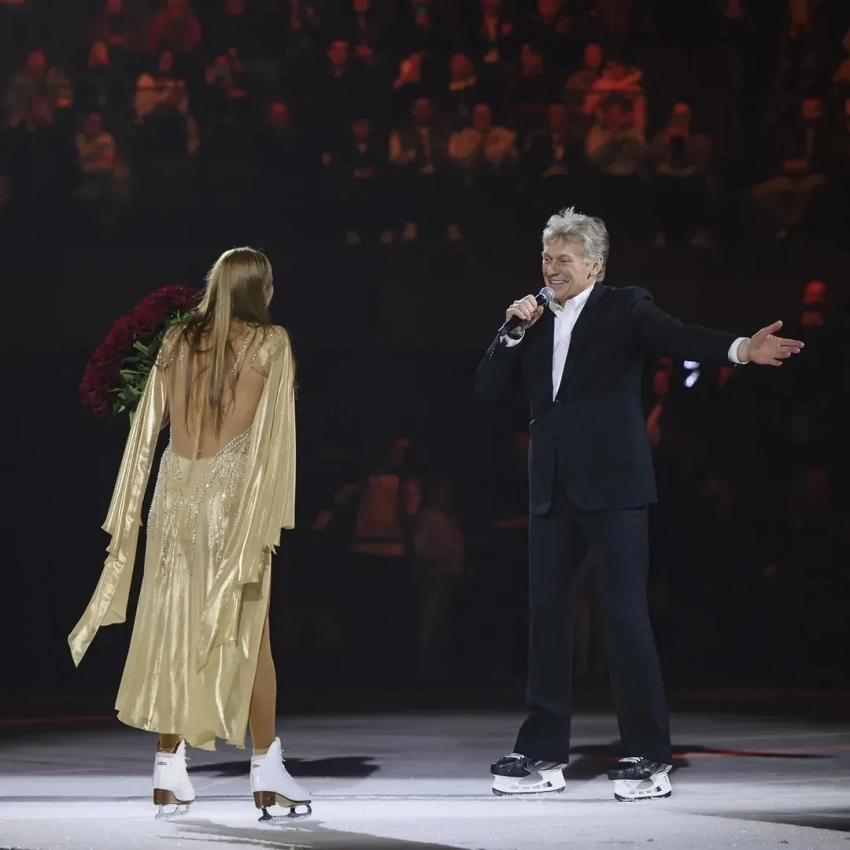 На днях олимпийская чемпионка в танцах на льду Татьяна Навка отмечала 50-летний юбилей: в своём новом ледовом шоу-театре Navka Arena в Москве она организовала представление с участием фигуристов. В какой-то момент на лёд, к удивлению зрителей, вышел и 57-летний Песков: с букетом красных роз он исполнил под песню "А он мне нравится" небольшой танец с Навкой и признался ей в любви.