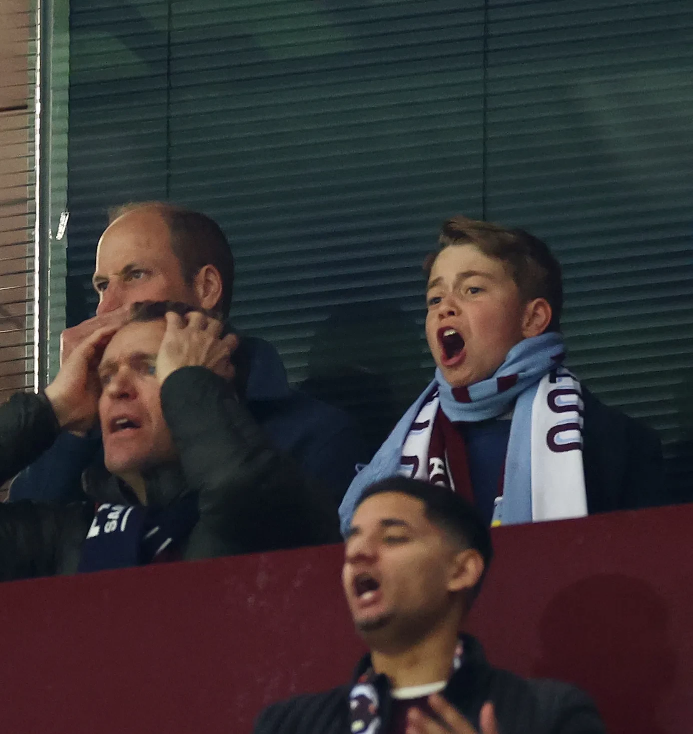 42-летний принц Уильям вместе с 11-летним сыном Джорджем снова посетили футбольный матч между "Астон Виллой" и французским "Пари Сен-Жермен". На этот раз члены королевской британской семьи отправились в Бирмингем, город любимой команды Уильяма "Астон Вилла", где на стадионе "Вилла Парк" прошла игра в рамках 1/4 финала Лиги чемпионов УЕФА.