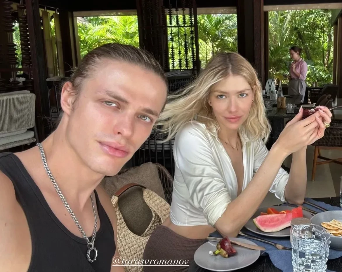 На новом снимке 38-летняя Перминова запечатлена вместе с Романовым во время завтрака. Также Елена добавила снимок, на котором манекенщик позирует в полотенце на фоне океана, и ещё свою фотографию в лёгком жёлтом платье с пляжной сумкой. "Прекрасное утро с ним" — подписала Перминова фотографию. Позже она опубликовала серию роликов, где вместе с Тарасом катается на велосипедах по пирсу.