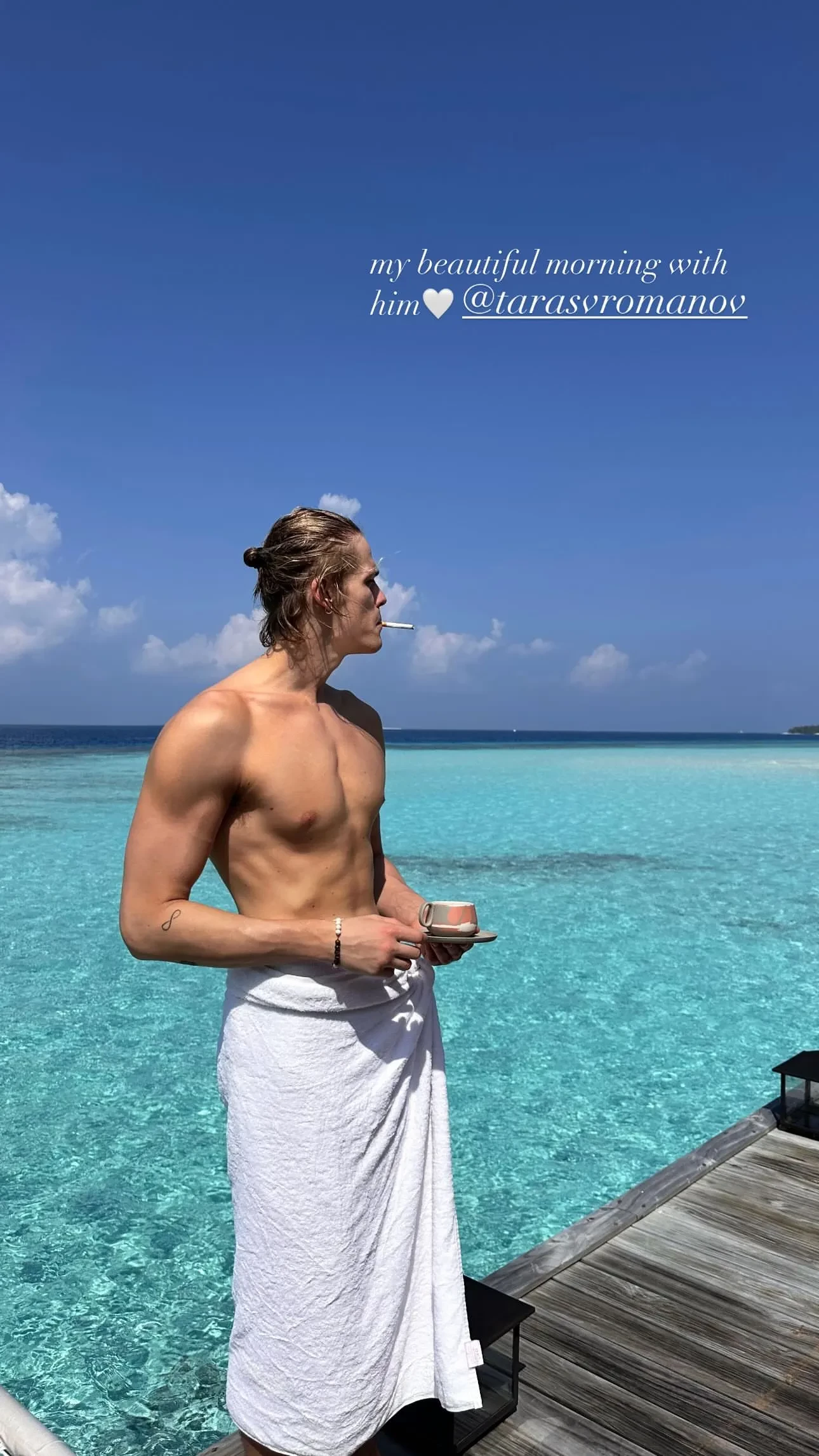 Елена Перминова опубликовала новые фотографии с Тарасом Романовым с отдыха на Мальдивах