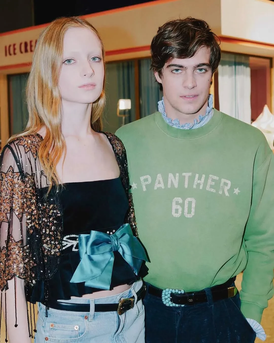 Младший сын Наоми Уоттс, который недавно дебютировал на подиуме Valentino, снялся в рекламной кампании бренда. Для съёмки 16-летний Кай надел чёрный топ с баской, прозрачными рукавами и синим бантом на талии, светлые джинсы, прозрачные перчатки и чёрные туфли на каблуках. В своём инстаграме* он также опубликовал кадры с бэкстейджа, на одном из которых позирует с креативным директором бренда Алессандро Микеле.