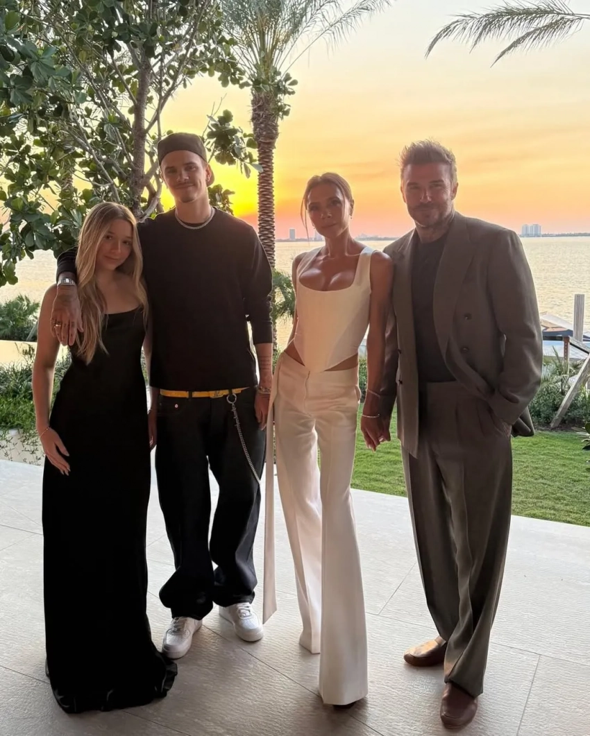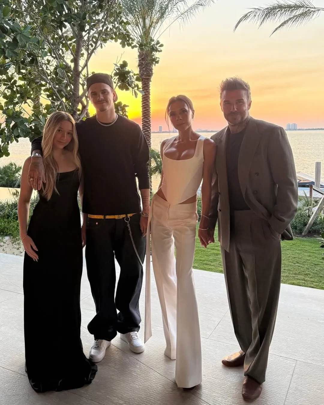 Дэвид и Виктория БекхэмСинди Кроуфорд, Рэнди Гербер и Виктория Бекхэм с подругойХарпер, Ромео, Виктория и Дэвид БекхэмВиктория БекхэмДэвид и Изабелла Грутман, Виктория и Дэвид БекхэмИзабелла Грутман и Виктория БекхэмВиктория Бекхэм и Никола Пельтц в 2024 годуНапомним, что Дэвид и Виктория Бекхэм поженились в 1999 году. У супругов четверо детей: 26-летний Бруклин, 22-летний Ромео, 20-летний Круз и 13-летняя дочь Харпер. С невесткой Николой Пельтц у Виктории ранее были натянутые отношения. В 2022 году дочь миллиардера Нельсона Пельтца отказалась от свадебного платья бренда Виктории Victoria Beckham и её помощи при подготовке торжества. Позже они якобы наладили отношения и выходили вместе в свет.