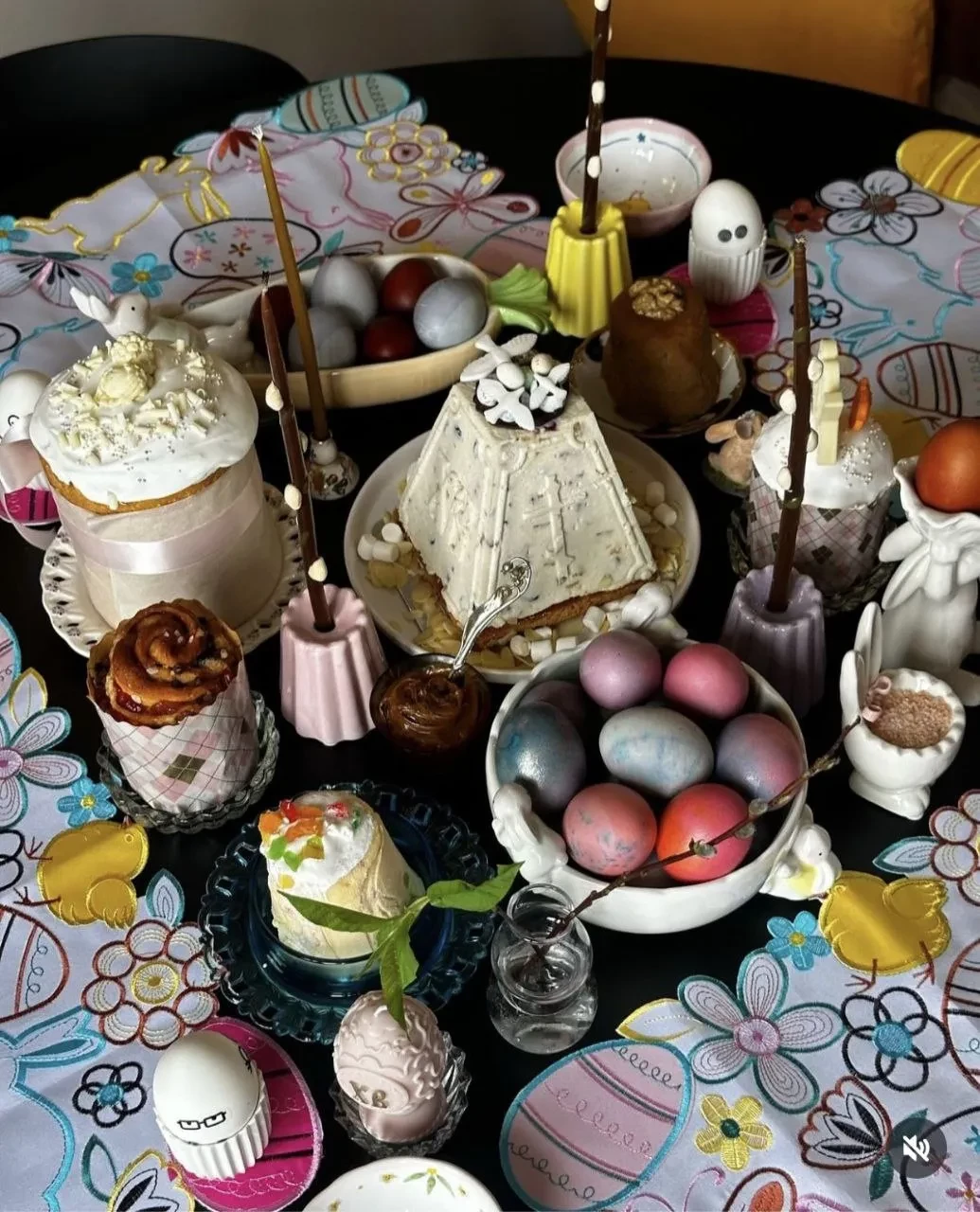Празднование Пасхи у Яны РудковскойМаксим Галкин* показал убранство праздничного стола. Татьяна Навка сфотографировала дочь от Дмитрия Пескова на фоне пасхальных куличей.