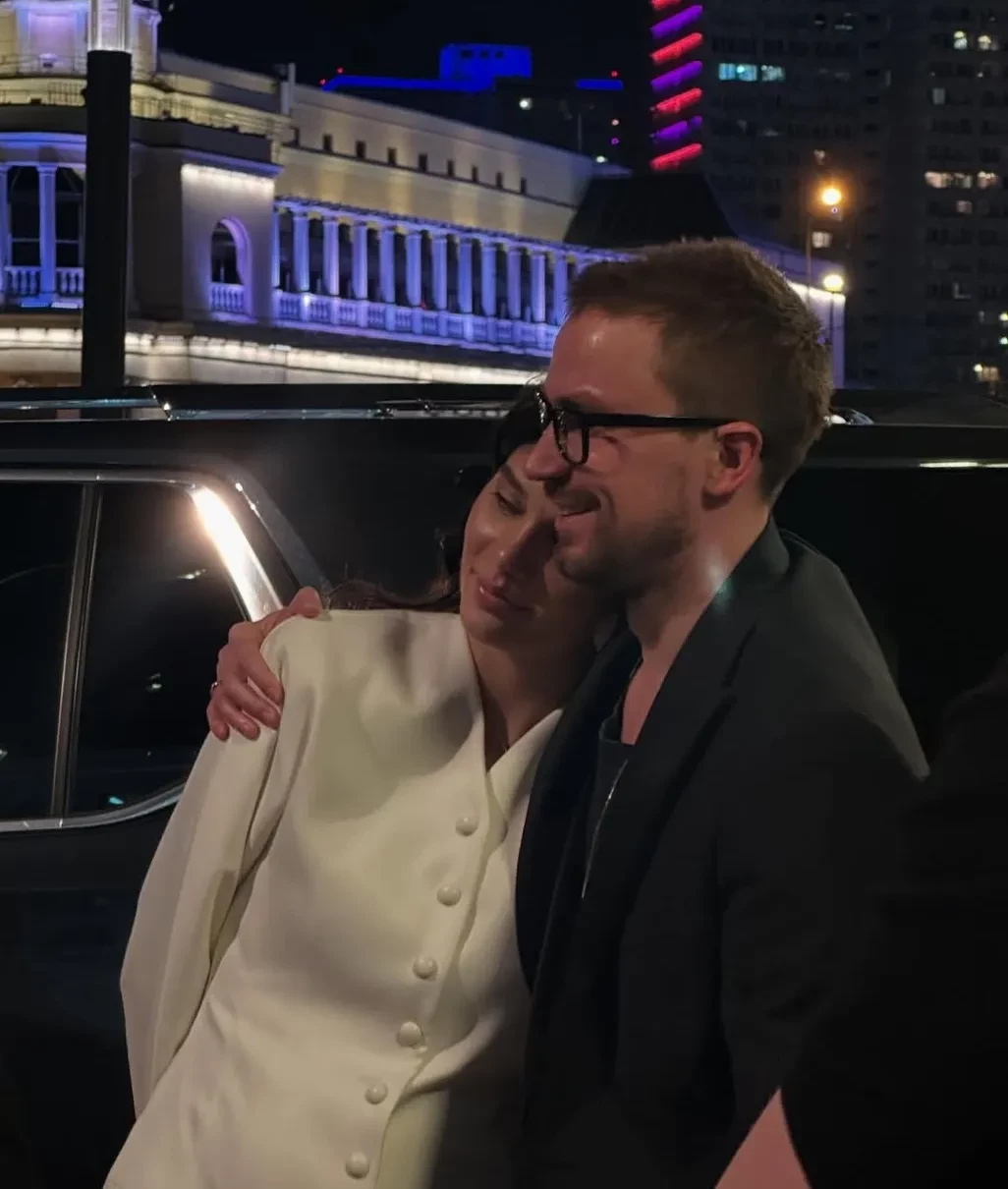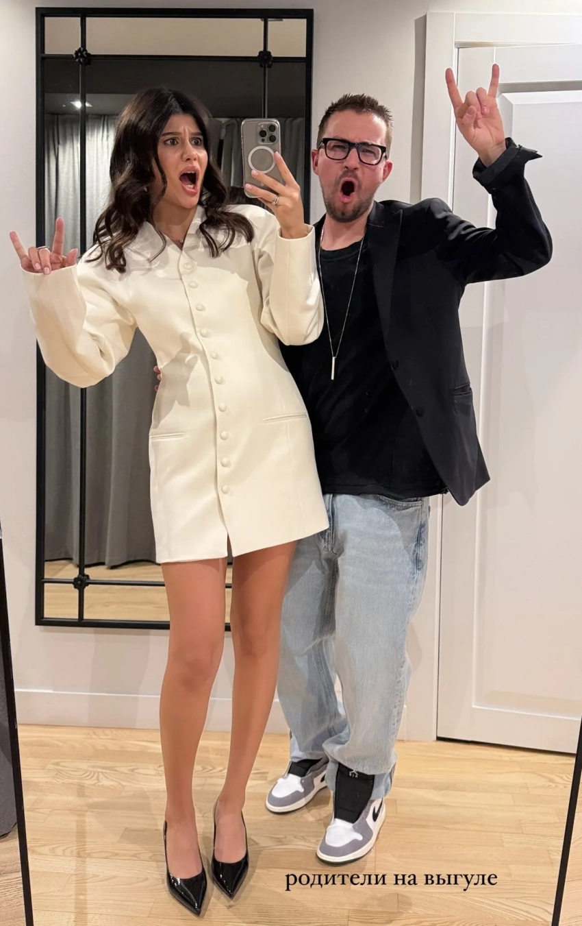 "Родители на выгуле", — написала в соцсетях Виктория, которая на днях показала фигуру после родов. На снимках пара позирует вместе перед выходом и на дорожке фестиваля.