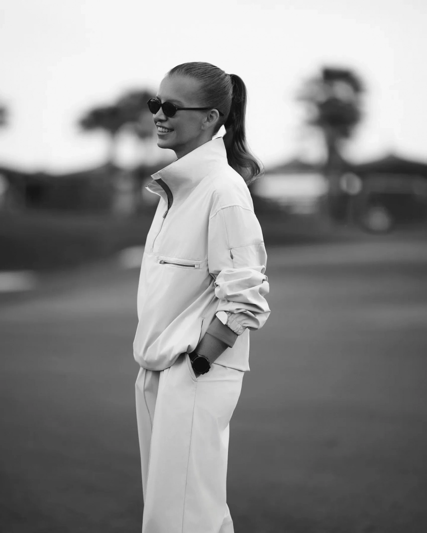 Иван ХохловСтоит отметить, что на днях 12 Storeez представил свою новую капсулу одежды для игры в гольф, созданную под вдохновением от хобби Хохлова. При разработке этой коллекции дизайнеры ориентировались на одежду ведущих гольф-брендов, а также учитывали мнение спортсменов и экспертов-технологов. В серии фотографий, опубликованных в социальных сетях бренда, предприниматель и его экс-супруга Ирина Голомаздина позируют на корте с клюшками и другими атрибутами гольфа. Иван одет в оранжевое поло с контрастным логотипом и бежевые брюки. Его образ дополняют плетёный ремень с кожаными вставками и солнцезащитные очки. На некоторых снимках он также примерил белую водолазку под поло и светлую ветровку с оранжевыми акцентами. Ирина, в свою очередь, продемонстрировала удлинённое голубое поло и серые спортивные брюки. Завершали образ кожаная коричневая перчатка для гольфа и солнцезащитные очки, как у Ивана. В рамках съёмок она также примерила белый спортивный костюм.