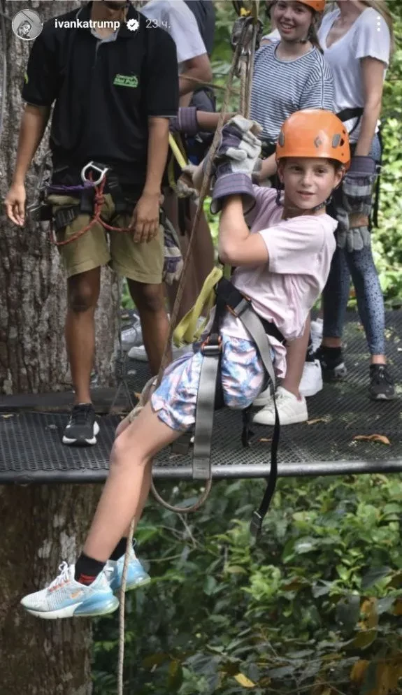 "Счастье — провести пасхальную неделю в окружении красот Коста-Рики. Время замедлилось. Мы катались на лошадях под золотым небом, протискивались через джунгли, прыгали в прохладные водопады и читали книги до тех пор, пока солнце не скрывалось за горизонт. Моё сердце наполнено благодарностью за эти моменты", — подписала Трамп отпускные фото.