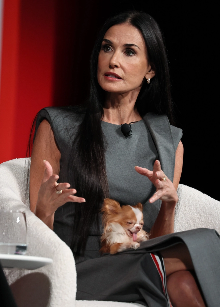 62-летняя Деми Мур, которая в этом году не получила "Оскар" за роль в "Субстанции", но завоевала свой первый "Золотой глобус" и была признана "самой красивой женщиной в мире", пришла на мероприятие вместе со своей собакой Пилаф.