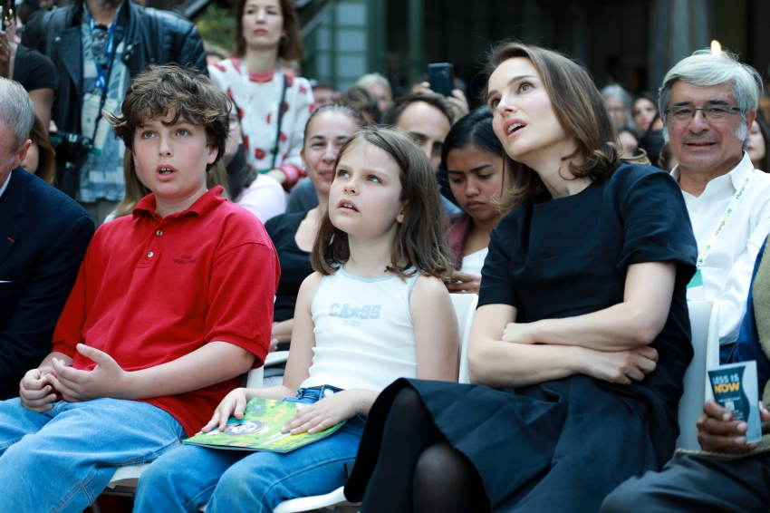 Фотографы засняли, как Портман идёт по улице города в окружении толпы поклонников с 13-летним Алефом и восьмилетней Амалией. Дети также присутствовали в зале, когда актриса выступала с речью со сцены. Напомним, Портман уже давно является экологической активисткой и защитницей окружающей среды.
