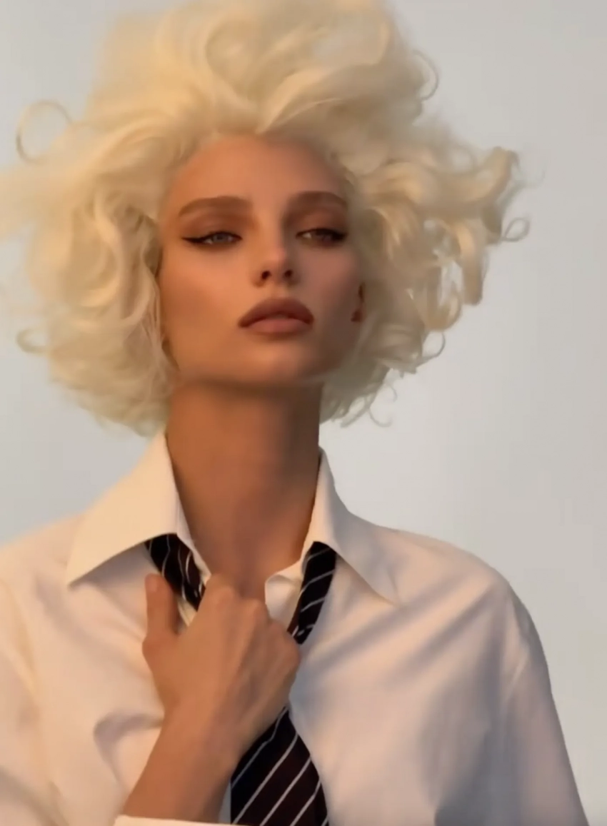 26-летняя Алеся Кафельникова стала блондинкой для новой съёмки. Модель опубликовала кадры из фотосессии, на которых она позирует в образе, напоминающем легендарную голливудскую звезду Мэрилин Монро: в светлом парике, белой рубашке с галстуком и брюках, а также в чёрном облегающем платье и золотых украшениях. Узнаваемым образом актрисы в разное время вдохновлялись также многие легендарные модели 1990-х от Линды Евангелисты до Евы Герциговой.